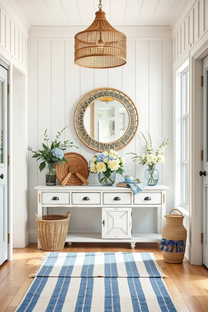 In my opinion, the beauty of a coastal entrance is its informal sophistication. It is never excessive, but it is full. Designers like Barclay Butera will constantly remind us that the coastal style is all about being relaxed, and that is why it is important to keep the palette neutral and light.