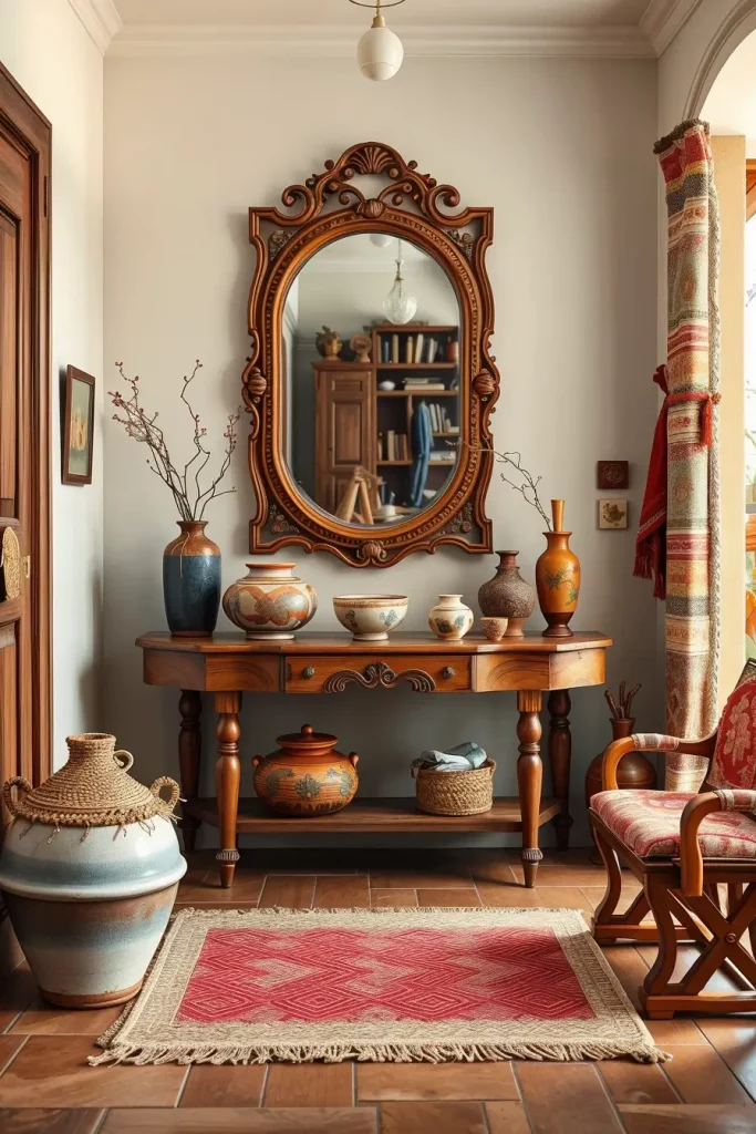 The main products I tend to suggest are hand-made ceramic vases, handwoven carpets, or carved wooden mirrors. They are not just objects that take up space, but they tell a story. Even one piece of handcrafted work can be the center of attention in a rather minimal entryway.