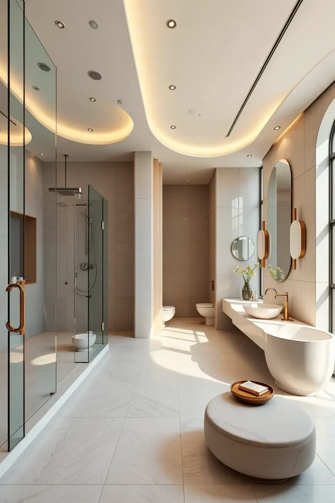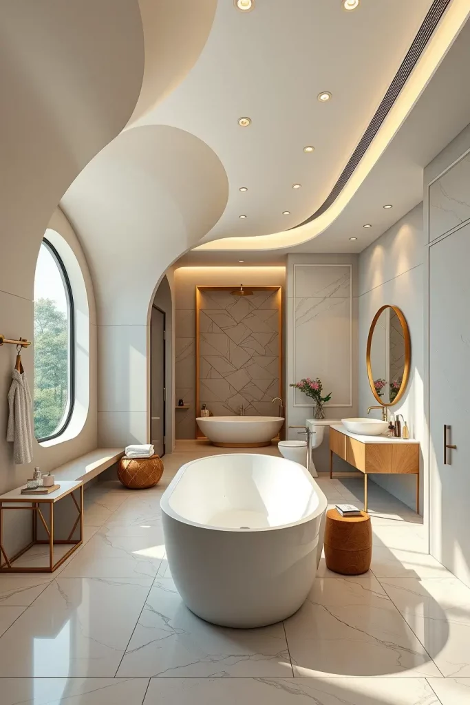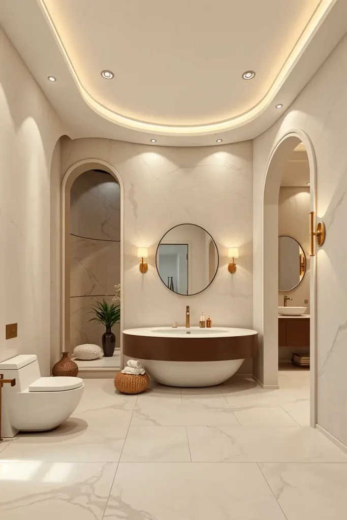 Architectural Curves In Ceilings And Bathroom Walls