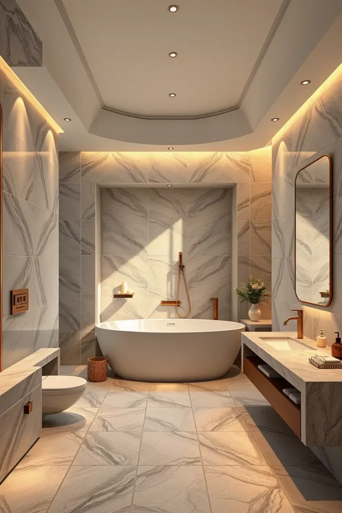 The choice of high-end materials in 2026 master bathrooms is specifically aimed at adding curved and streamlined shapes. I concentrate on the materials that shape themselves around the curved edges, and these materials do not break the flowing design.