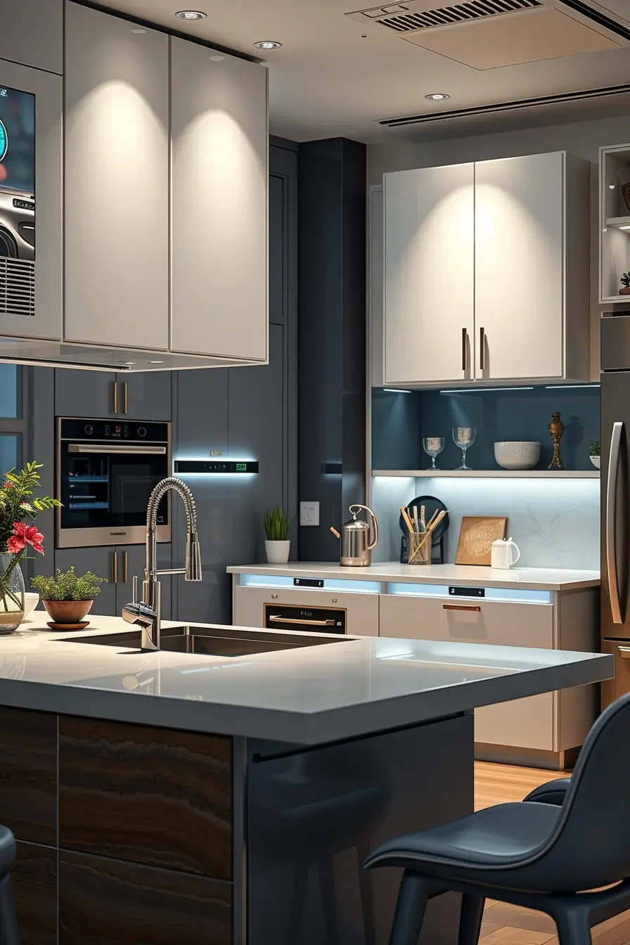 When it comes to the furniture and layout I would always suggest to have built in charging stations, smart refrigerators that have a transparent screen and lighting systems that are managed by mobile applications. These are not tricks but they make life a lot easier. A contemporary kitchen enjoys smooth technology which operates within the backdrop.
