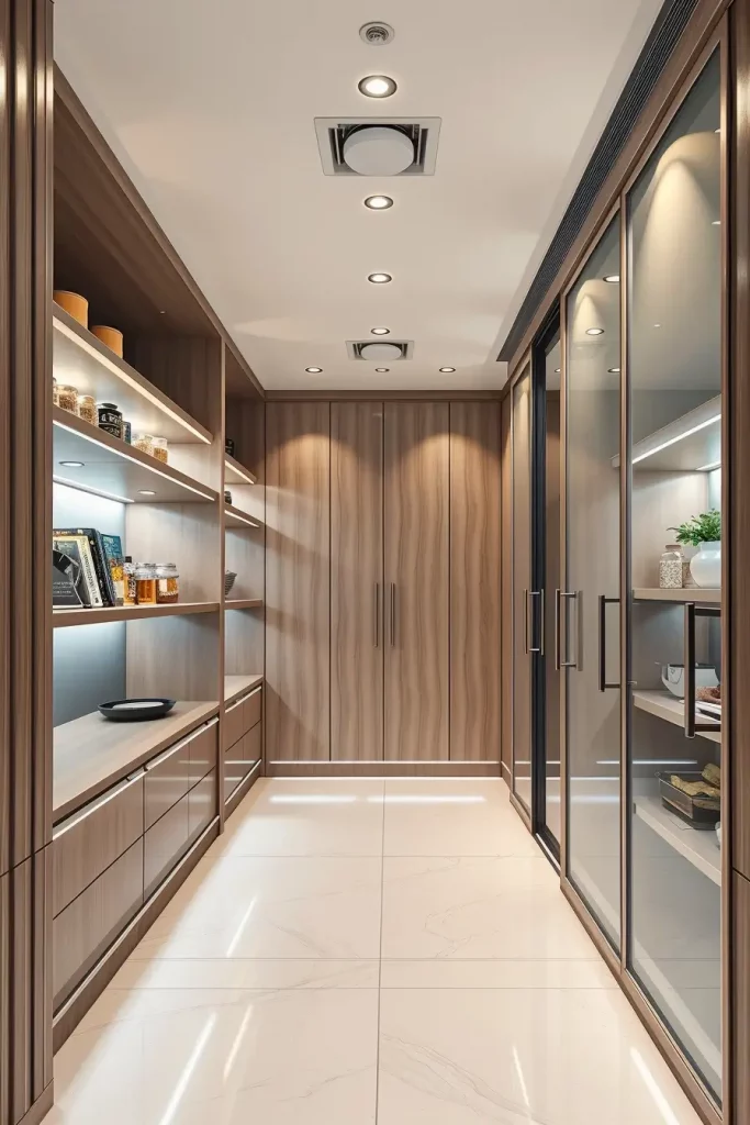 My association with luxury narrow pantry design would be smooth surfaces, built-in lighting, and quality of materials that would be seen as elegant. Luxury does not imply extravagance in 2026, but efficiency combined with beauty. I would also tend to furnish pantries with matte oak shelving, brass handles, and marble backplashes to create a minor amount of opulence that does not overpower the space. The defining feature of the high-end storage of the modern era is custom cabinetry with soft-close drawers and inbuilt organizational dividers.