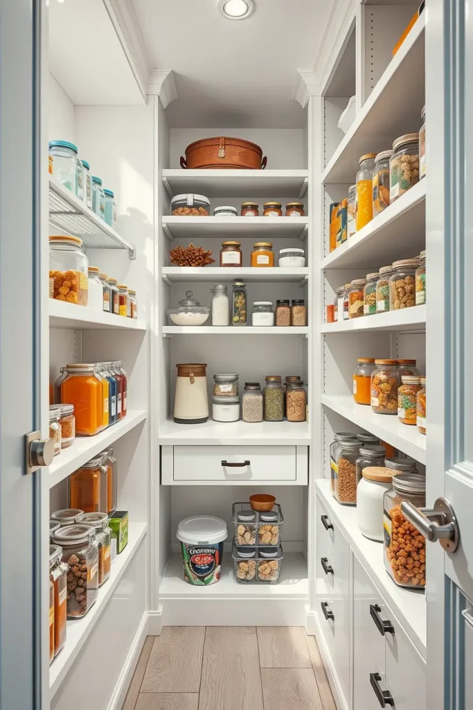 In my own design experience, visual noise can also be minimized by the use of hidden storage, which gives the room an illusion of being larger. Architectural Digest emphasizes that the hidden storage helps to increase the minimalist style and even maximize the utility. I absolutely concur with this, such a strategy turns a small pantry into a sophisticated, useful area.