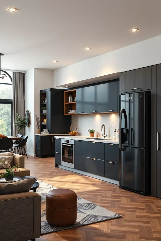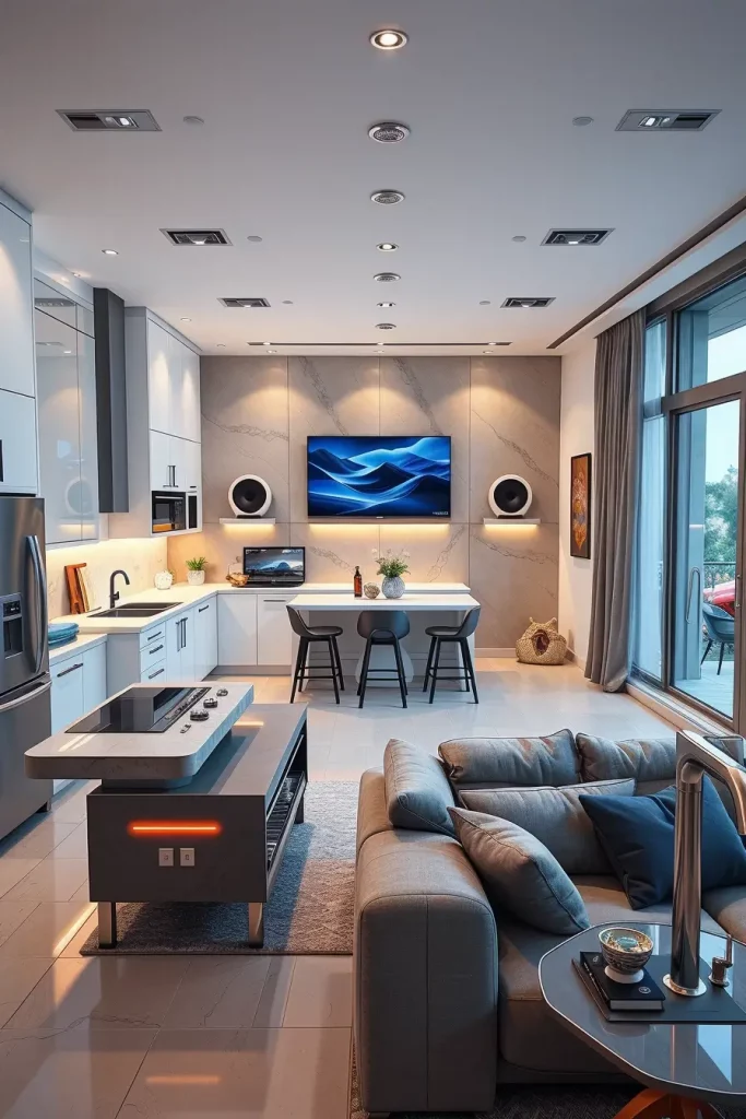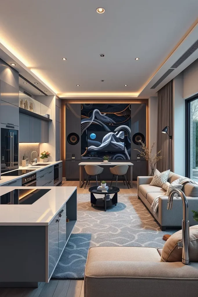 Technology is very big in the open kitchen living room in 2026. The high-tech appliances have become an inseparable part of the design and improve the social experience overall. I usually combine in-built smart ovens, refrigerators with apps, and induction cooktops that can serve as smooth counter space when not in use.