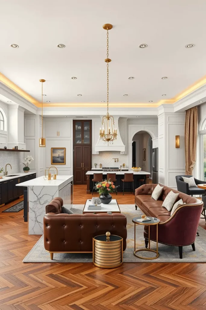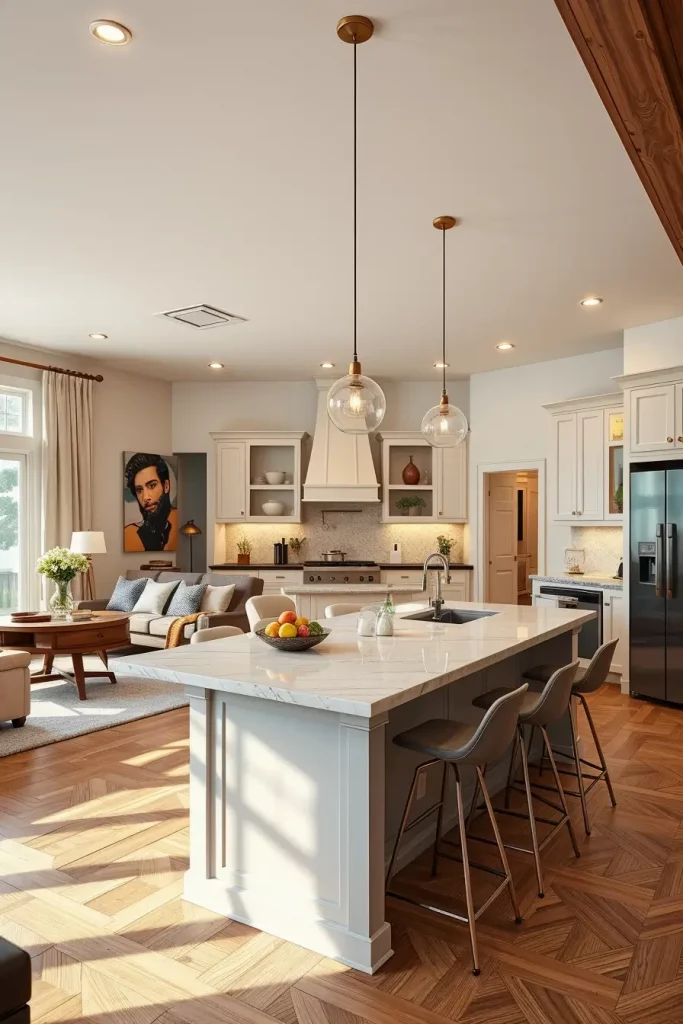 One of the most powerful unifying features of open kitchen living rooms is flooring. Seamless flooring patterns have become the norm by 2026, and there is no visual division between spaces. I have observed this method to increase the size and flow perception.