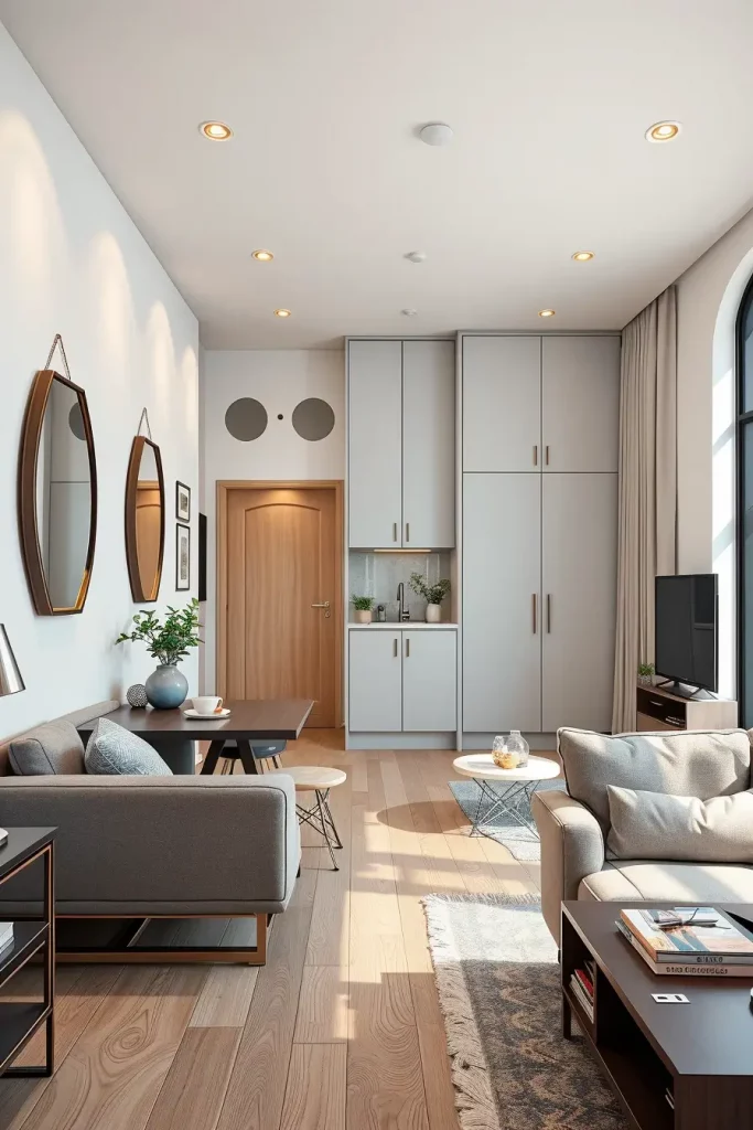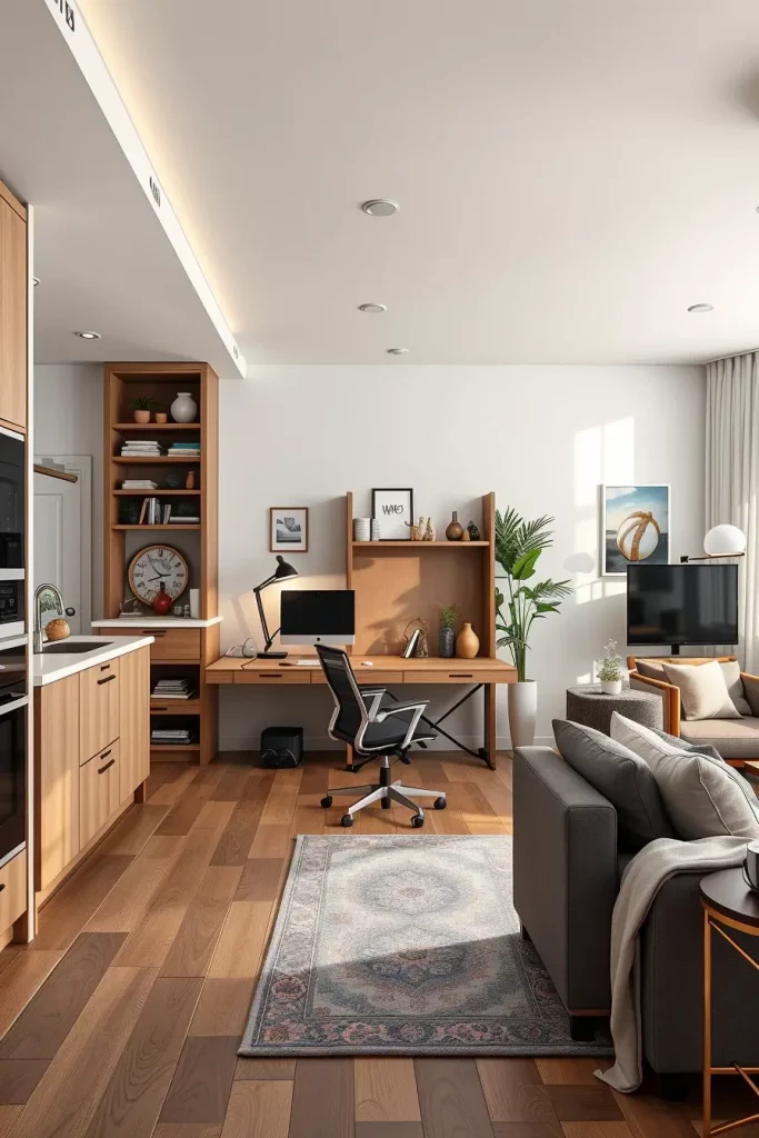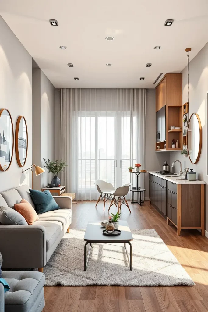 In order to ensure that the design is functional, I incorporate slimline kitchen cabinets, foldable dining tables, and compact sofas. The center of attention is usually a small kitchen island with a storage area beneath it, which is a balance between beauty and functionality. The selection of light color schemes, mirrors and smooth appliances is another way to make the illusion of additional space.