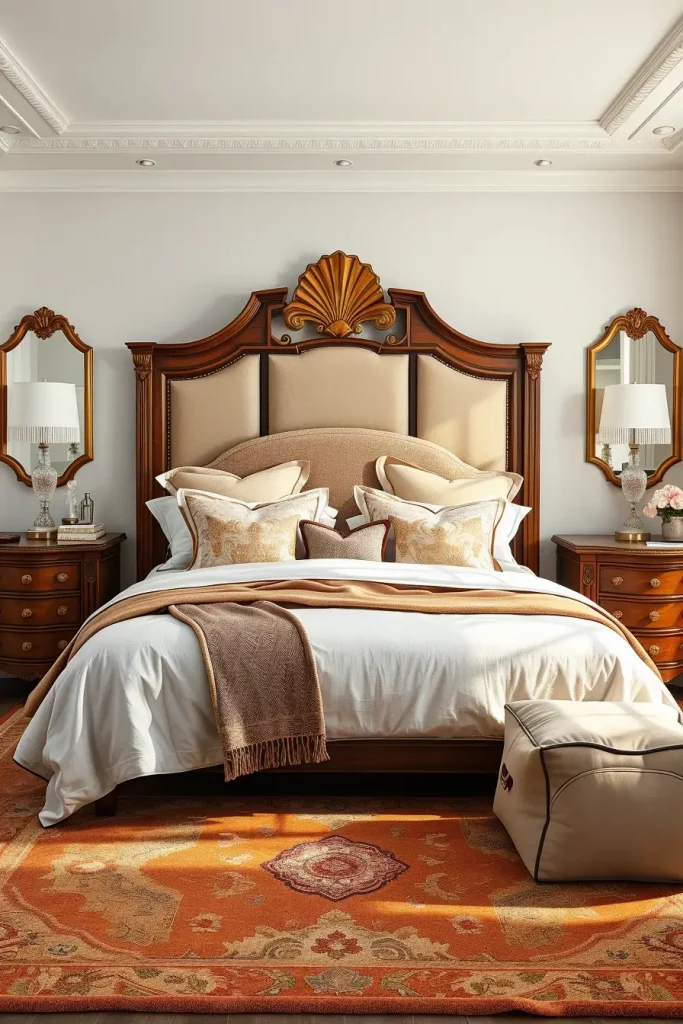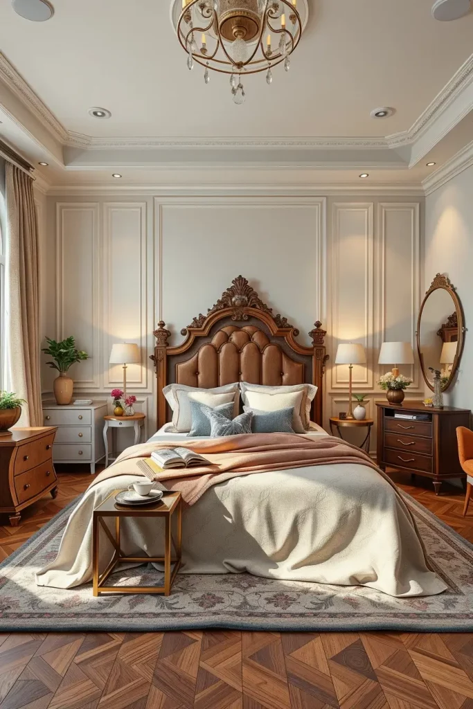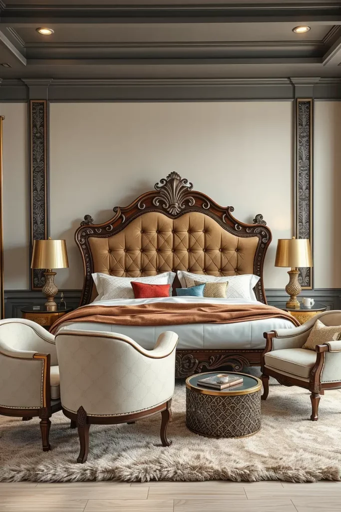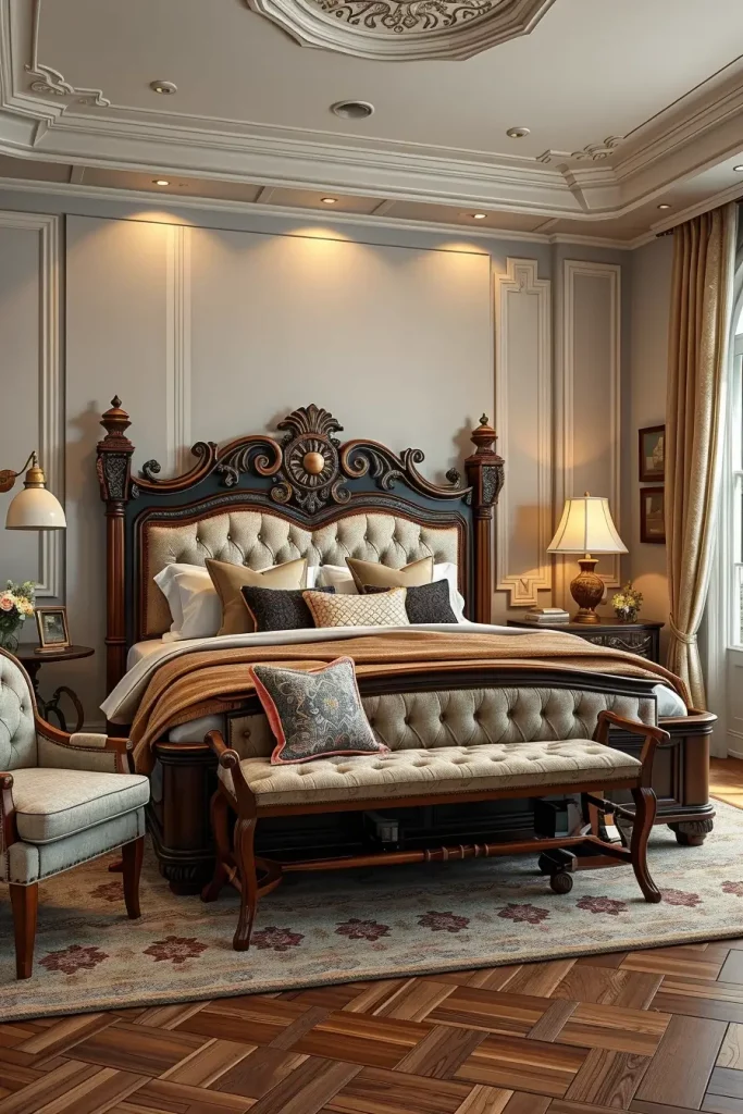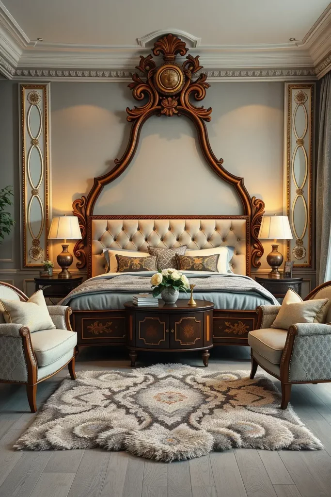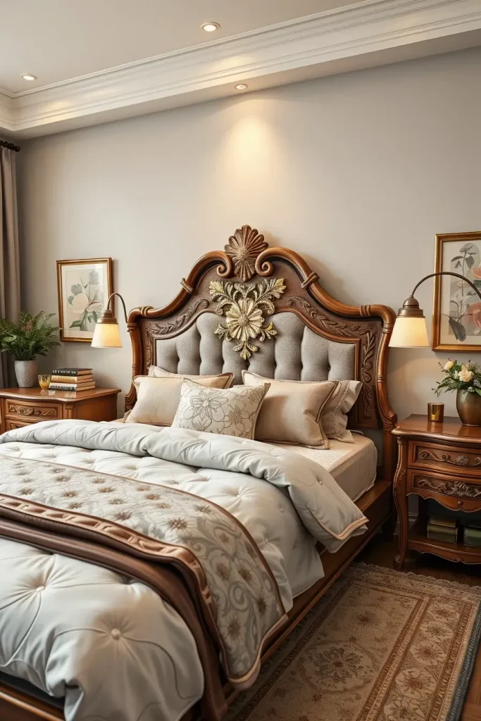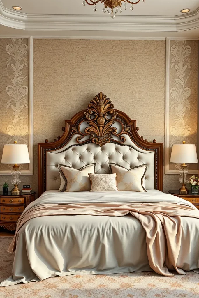 In this section, I would also include tips on combining ornate headboards with modern wall textures e.g. soft wallpapers or fabric panels to counterbalance traditional ornamentation with a modern environment.