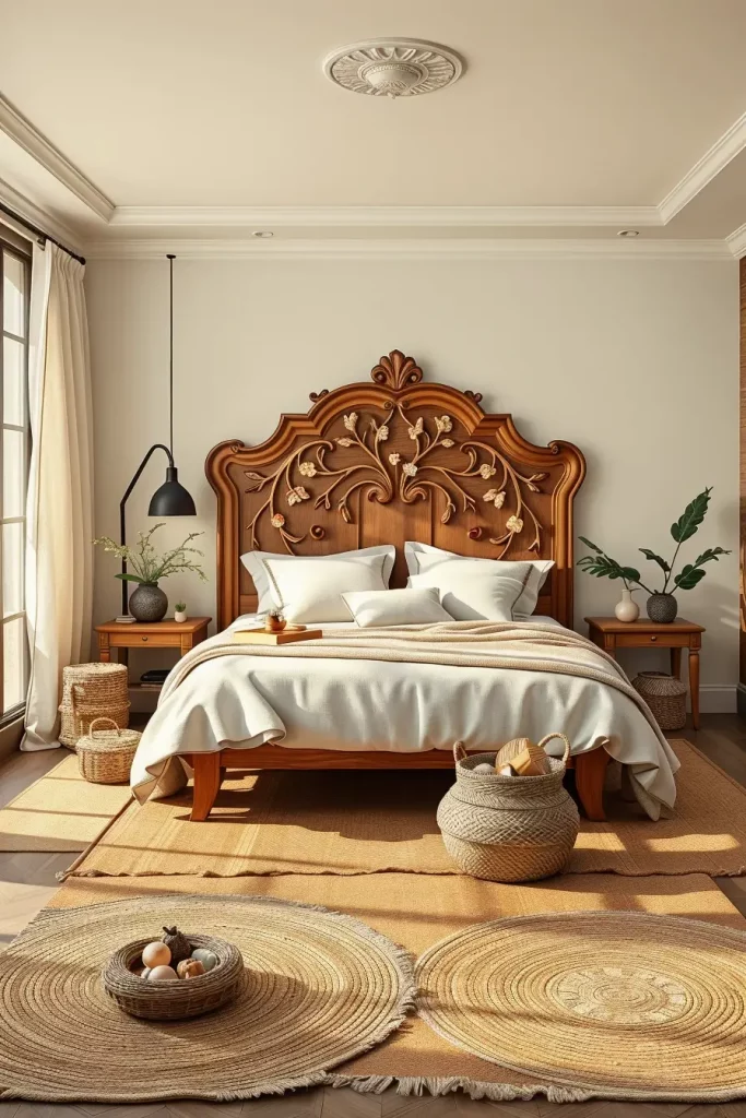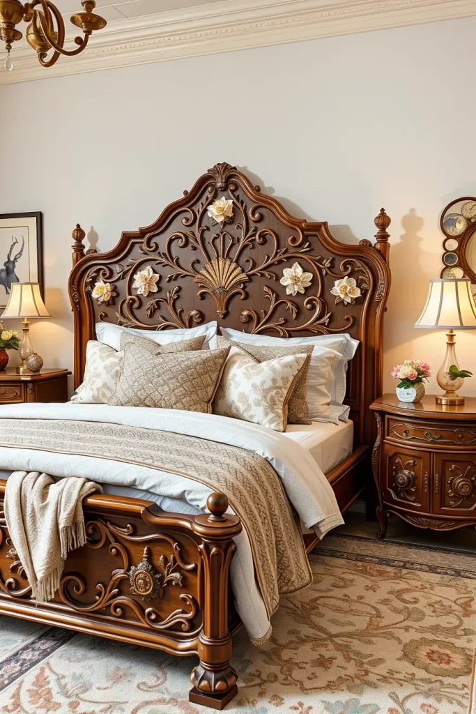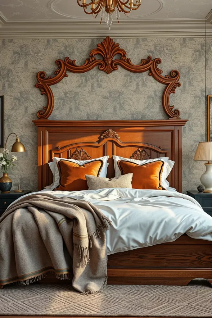 I would also say that carved woodwork works well with layered textures like woven throws or linen bedding, which is soft and balances the impact of the woodwork without losing the elegance.