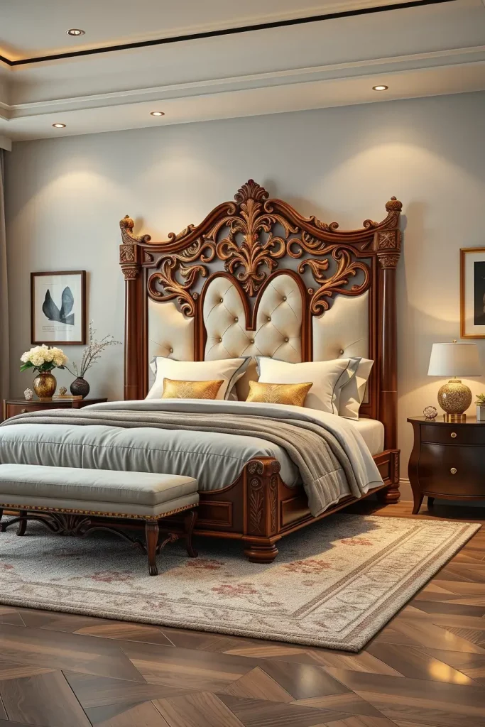 How can the bed frame contribute to the feeling of style and comfort when designing a bedroom? Does a fancy headboard or a carved bed frame really make the room a place of exquisiteness? These are some of the questions that I tend to pose to myself when I am working on bedroom interiors. In my experience, elaborate workmanship and classic designs can turn a plain sleeping space into a work of art. In this article, I will express my ideas about various ways to include ornate headboards and carved bed frames in bedrooms.