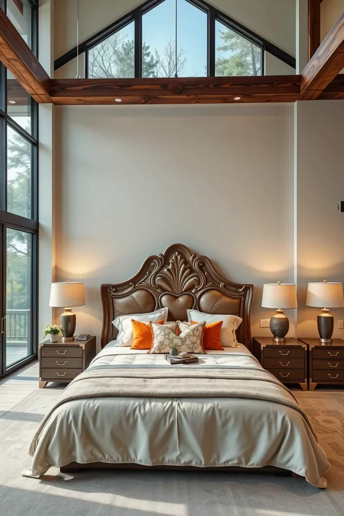 I incorporate plush bedding, soft throws, and upholstered accents to ornate beds in my designs to make them friendlier. A balanced feel is created by complementary furniture such as cushioned benches or upholstered side chairs.