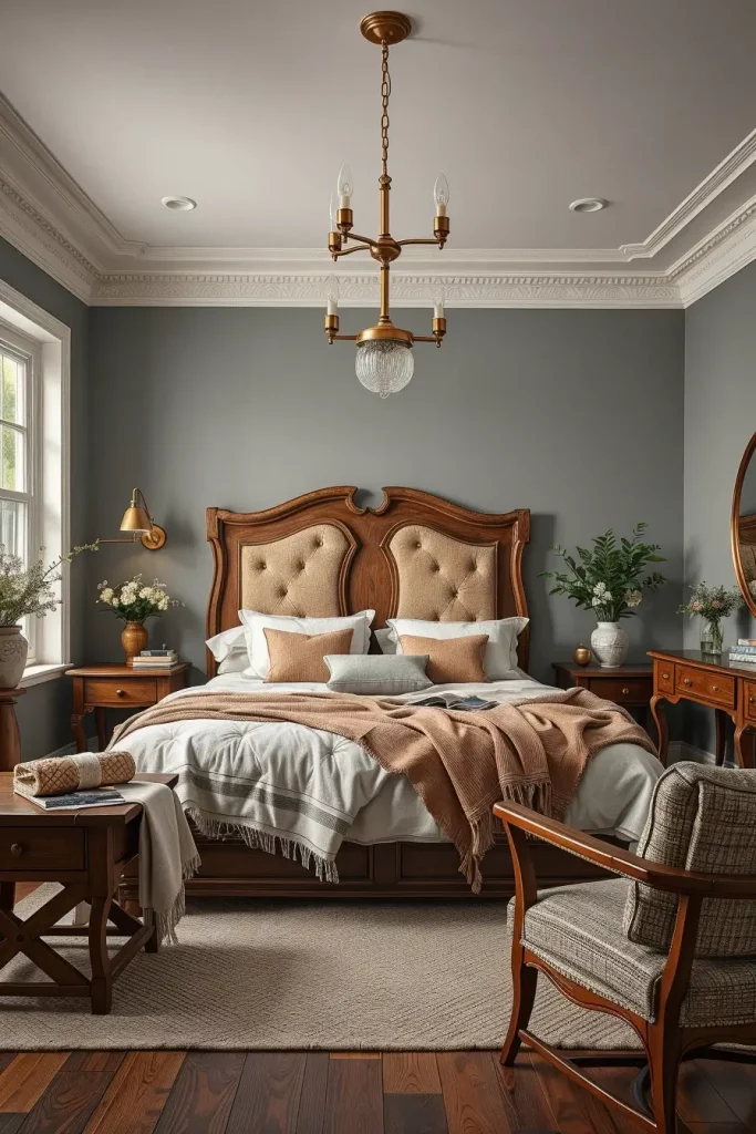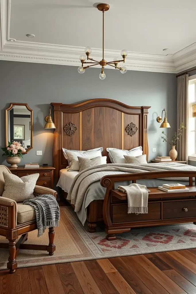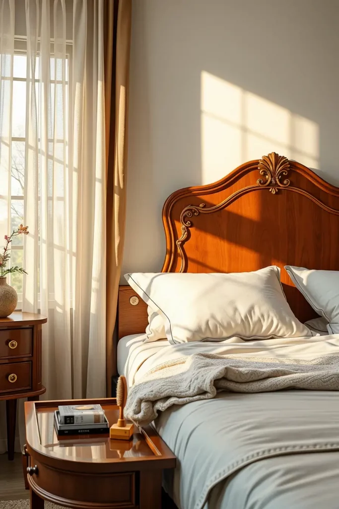 As an example, a carved oak headboard can be softened with velvet pillows, silk bedding or linen throws. A wooden tone is offset by a wool rug under the bed and brings warmth. This texture layering does not make the room look stiff and the carved details merge into the daily comfort.