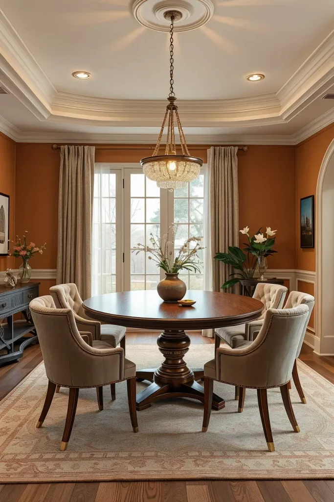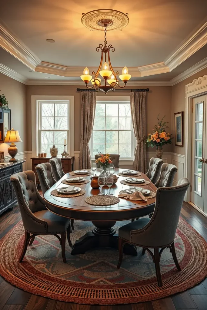 A comfortable dining room is usually all about the proper furniture, and an oval dining table is the best way to make the room feel warm and intimate. I concentrate on the combination of the table with upholstered chairs, with plush textures, i.e. a soft area rug under the feet, to make the space welcoming. The round shapes of the table encourage intimacy in a natural way without compromising comfort.