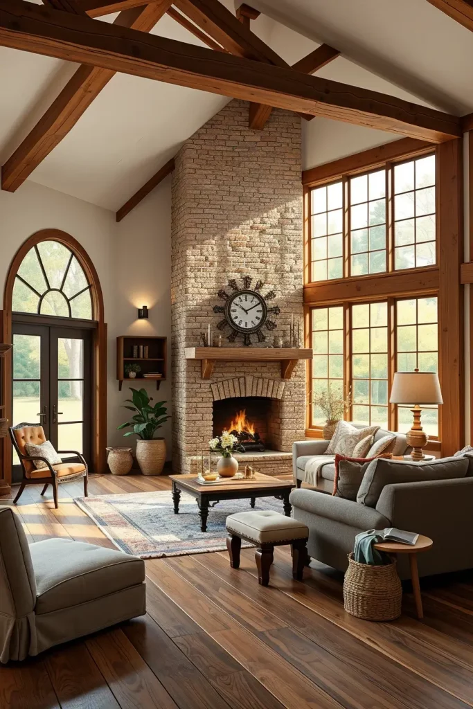I have found that fireplaces ground a room. I remember creating one with a limestone hearth and a thick wooden mantel and it instantly attracted people. Magazines such as Country Living often show how farmhouse fireplaces can combine rustic materials with a clean, modern design.
