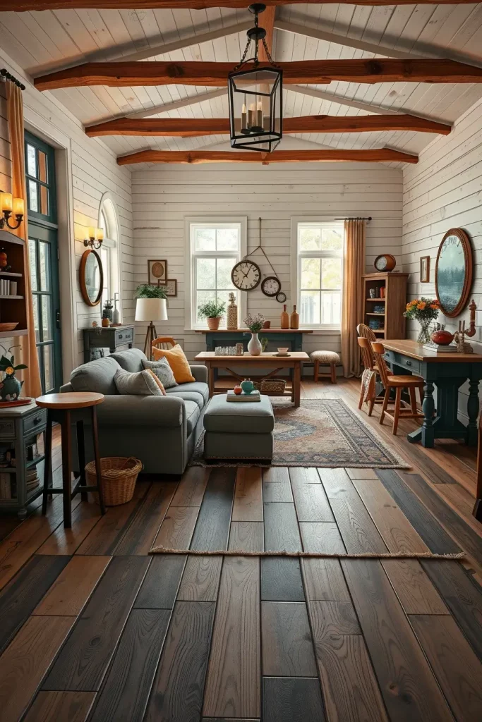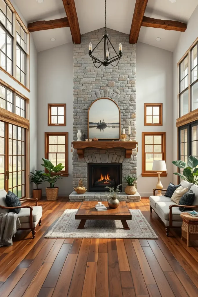 Besides shiplap, I also make use of beadboard, stone cladding, or reclaimed wood panels to make feature walls. These rustic finishes provide depth and aesthetic appeal, and they can be used well in fireplace areas, dining rooms, or even in bedrooms as accent walls. They are paired with little decoration and shine by themselves.