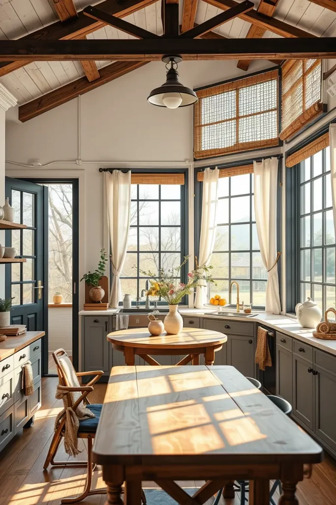 Farmhouse design relies heavily on windows as they allow the outdoors and the indoors to interact. I always advise clients to make use of maximum natural light by using large, grid-style windows with black or wood frames. These add to the architectural appeal and highlight the rustic yet functional farmhouse style.