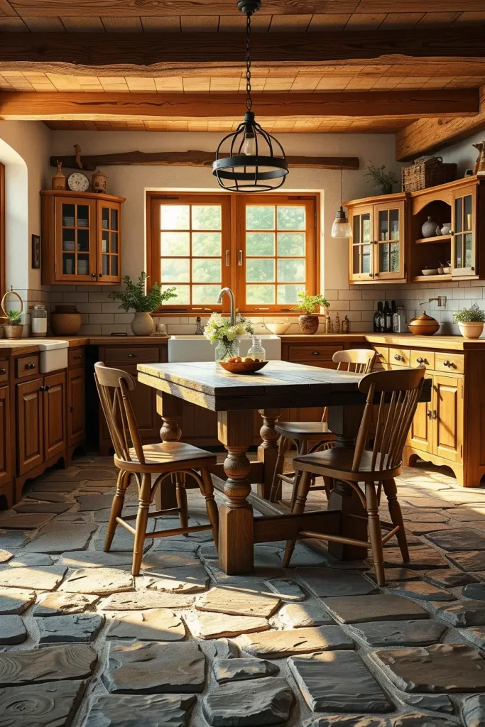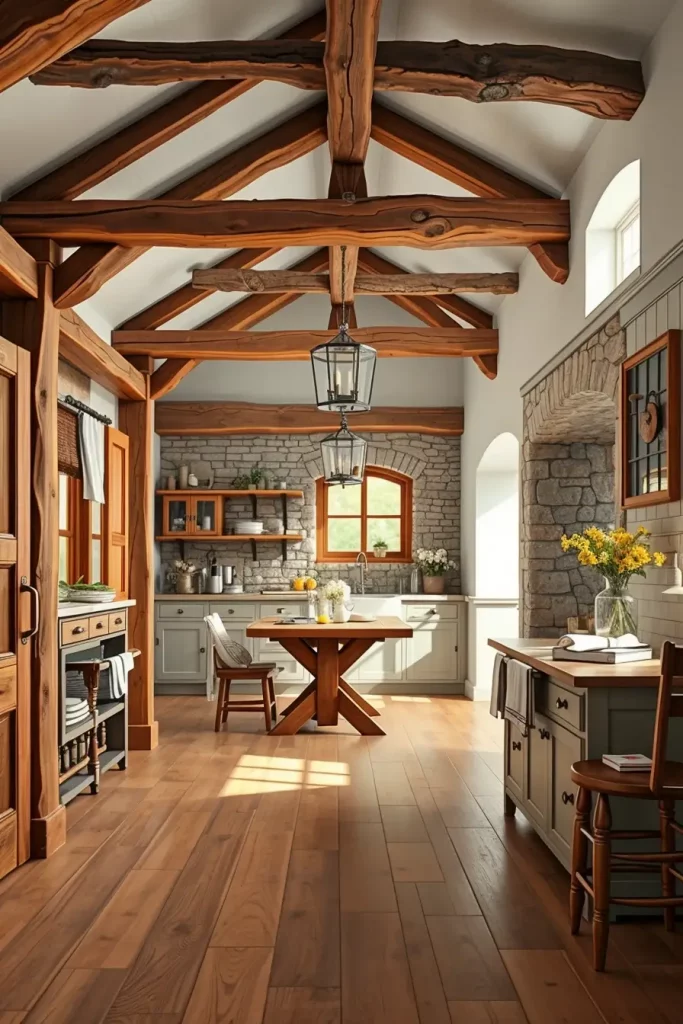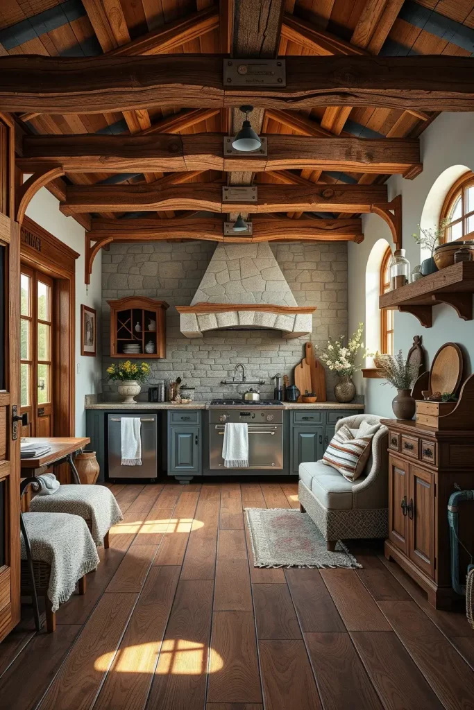 I would also recommend that you incorporate some modern elements into the rustic structure like stainless steel appliances. This makes the kitchen as efficient as it is attractive to look at.