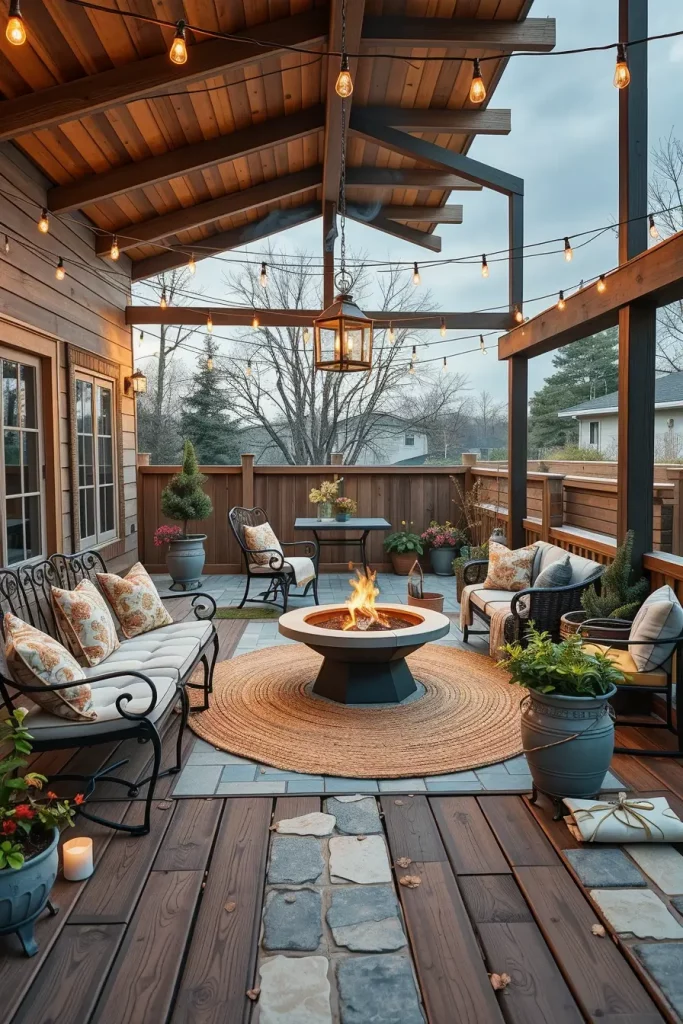 Farmhouse design really comes to life outdoors I usually design patios and backyards that are an extension of the interior, which include wood decking, natural stone paths, and durable outdoor furniture. There are String lights, lanterns, and fire pits that create a warm atmosphere and encourage people to stay out late.
