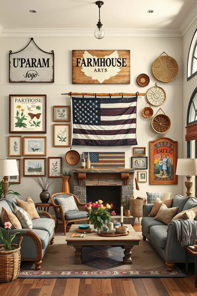 My personal experience with clients has shown that they like art that conveys a narrative. As an example, one client mounted a reclaimed wooden American flag in their living room and it became the emotional focal point. Magazines such as Architectural Digest tend to emphasize how farmhouse art must be a combination of personal history and rustic sophistication.
