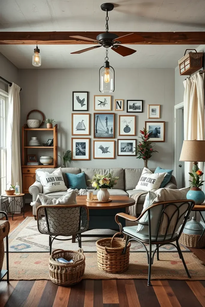 Cheap objects such as mason jar lighting, thrifted wooden chairs, or second-hand chests can be sanded, repainted and re-purposed. I have discovered that open shelving using simple brackets and reclaimed wood planks is not only cost effective, but also very practical in kitchens and living rooms. The addition of distressed picture frames, galvanized metal baskets, or simple cotton curtains can also do a lot without straining the budget either.