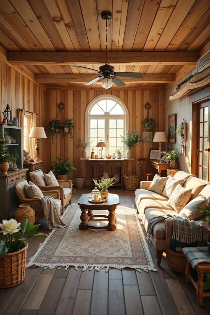 I would also recommend including some warm textiles like throw blankets or natural fiber rugs to make this section more complete. These details create a small farmhouse-style house that is layered and welcoming without occupying more space.