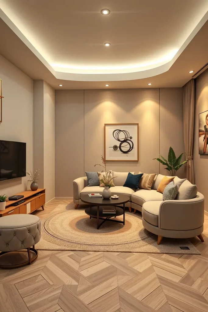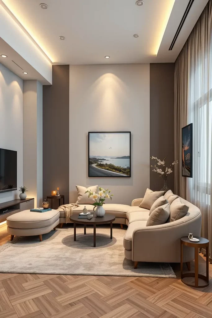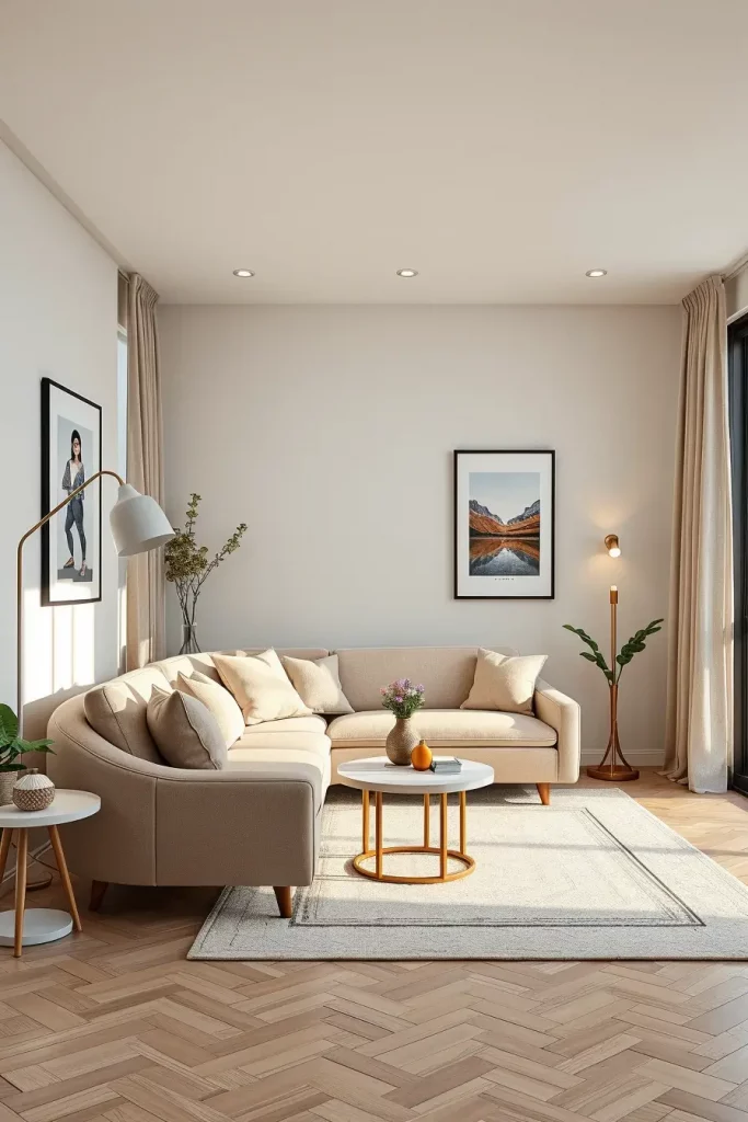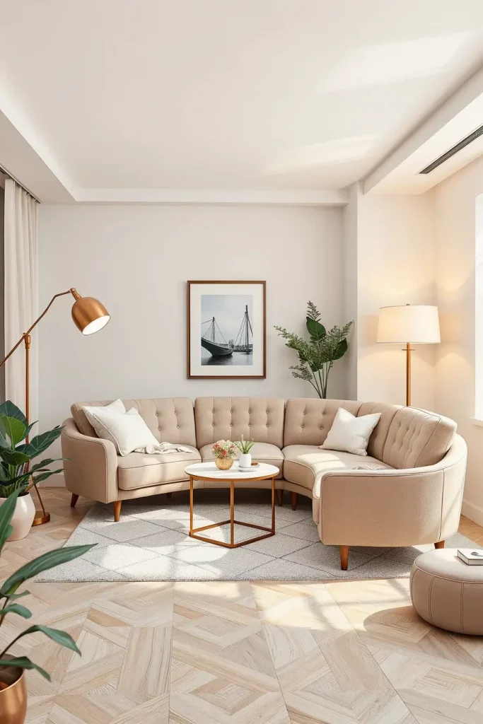 Curvy sofas are not merely an eye-catcher, it is a game changer to make the small apartment living rooms comfortable. The soft lines of a curved design in tight spaces contribute to the movement flow as smooth as possible and make the room look natural instead of a box. Light beige or cream colors that enable the area to reflect natural light is also a common choice on my part, as I prefer to keep the area open and bright.