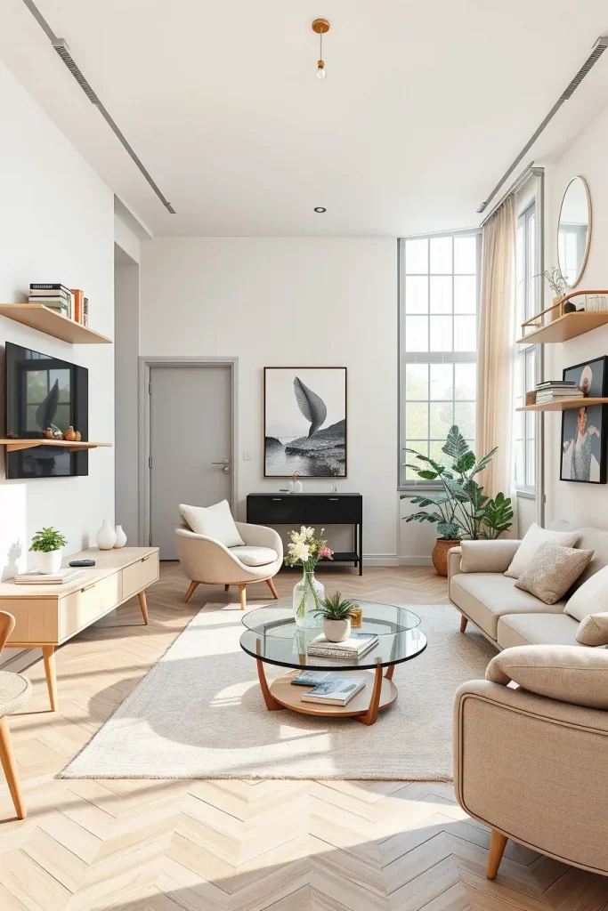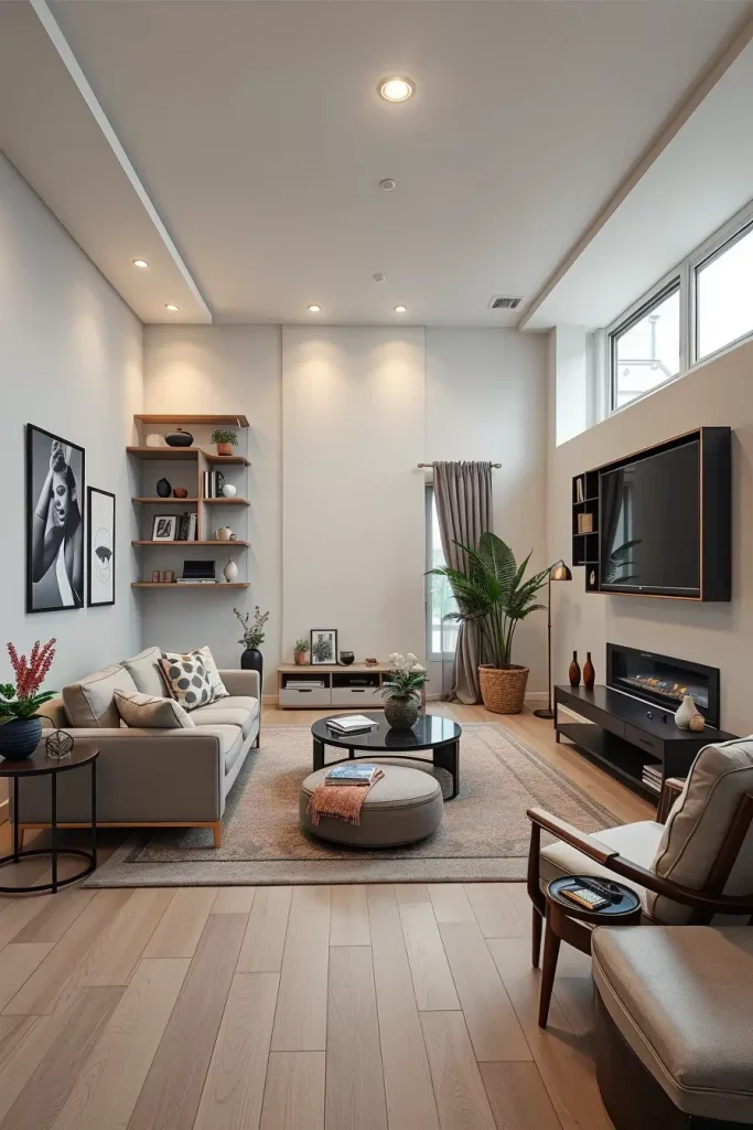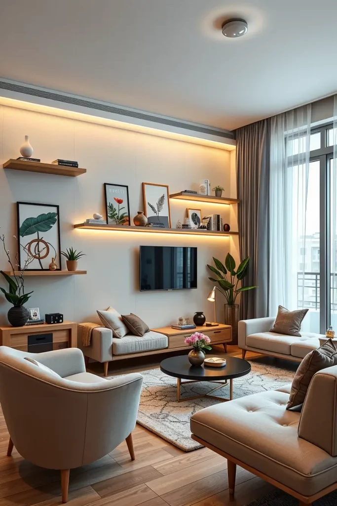 Floating shelves will continue to be one of the preferred options in 2026 in order to maximize storage space in small apartment living rooms. I enjoy the fact that they have a clean uncluttered appearance with a vertical storage facility. They are placed above the sofas or around the doorways and serve dual purposes and functions by transforming ordinary walls to art pieces.