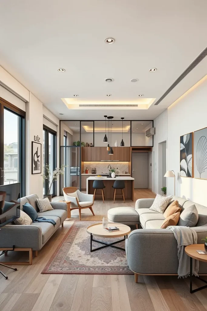 The small apartment living room design needs to be designed with consideration of zoning. I always begin with visual division of the space without any physical obstacle with help of area rugs, lighting or color transitions. It is an easy method of establishing various activities in a single room such as lounging, dining and working.
