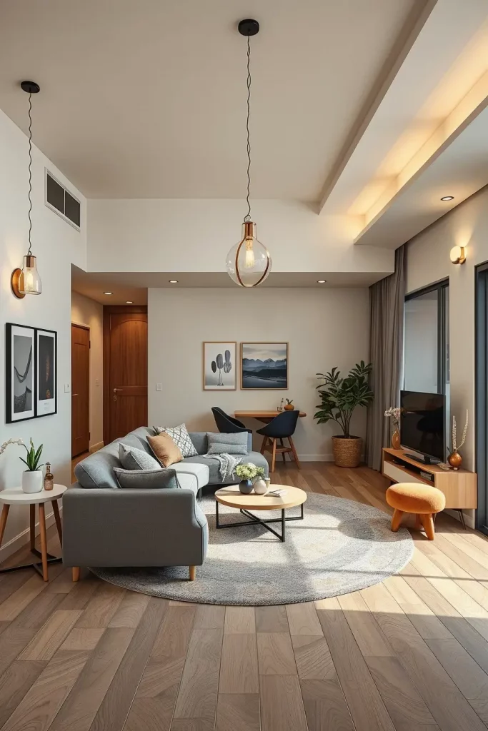 One of my greatest tools that I can employ in order to make small apartment living rooms look bigger is lighting. As of 2026, the lighting fixtures by the designers have been more sculptural and practical, combining art and a utilitarian purpose. I usually use curvy or streamlined forms of pendant lights which provide volume and elegance and are not overpowering the room. A well-done lighting system has the ability to visually enlarge a small area and perfect all of the textures and tones.