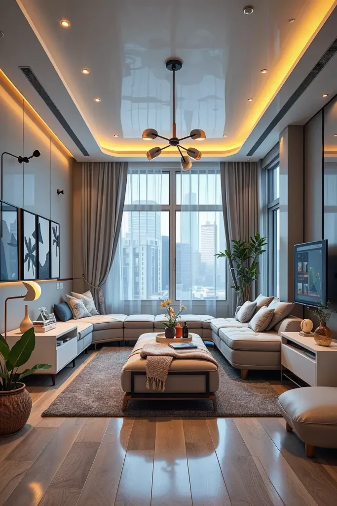 On the one hand, small apartment living rooms are getting smarter and more versatile in the future (2026). I have witnessed the strength of modern technologies mixing with the unusual and designer interiors, forming practical and beautiful space. The furniture is now customizable to the needs of the user: it has modular units and storage, and can even be folded and curved into a desk, which doubles as decor. The future of small living lies in the inclusion of form, functionality, and versatility into one.
