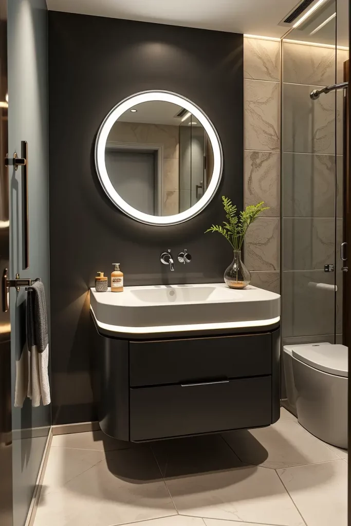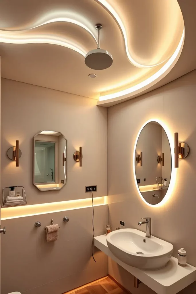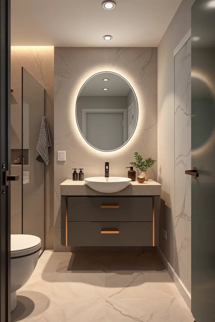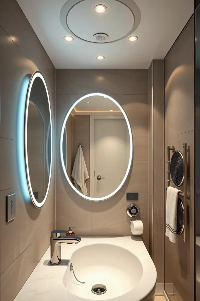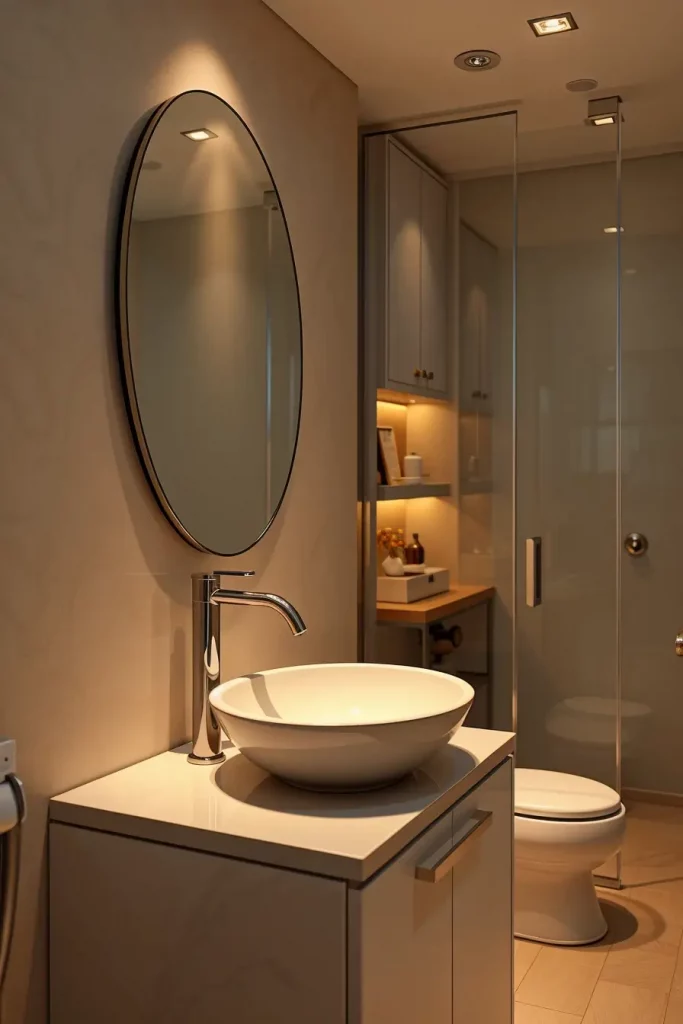 Soft Oval Lighting Designs For Modern Compact Bathrooms