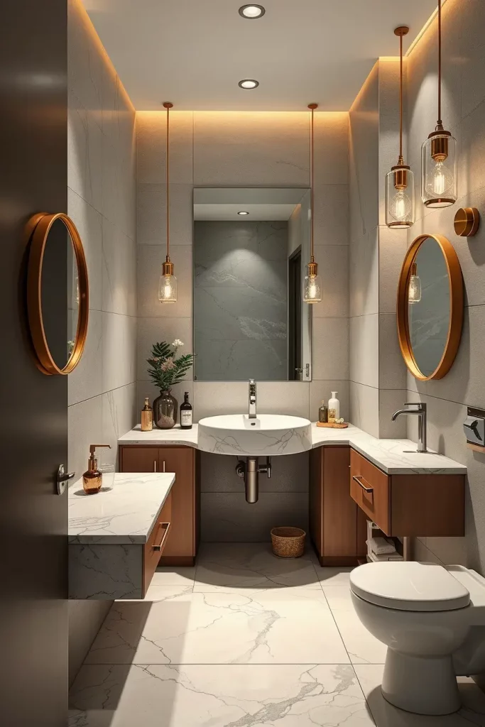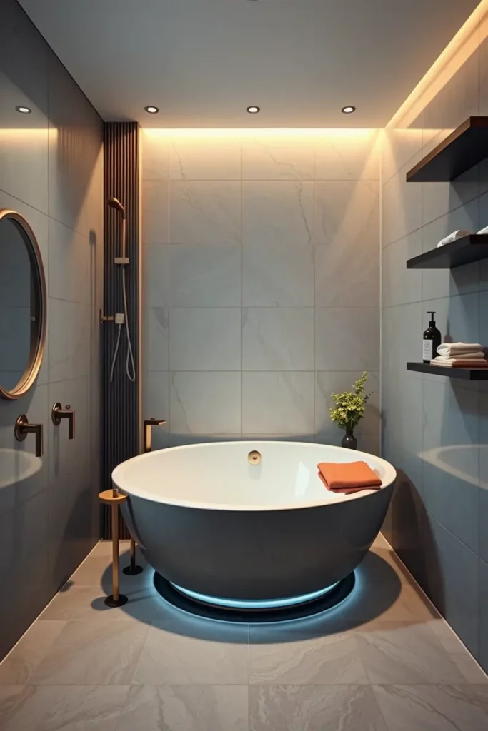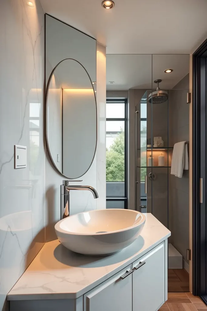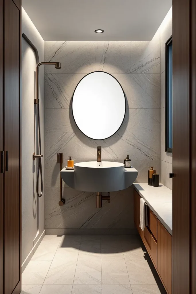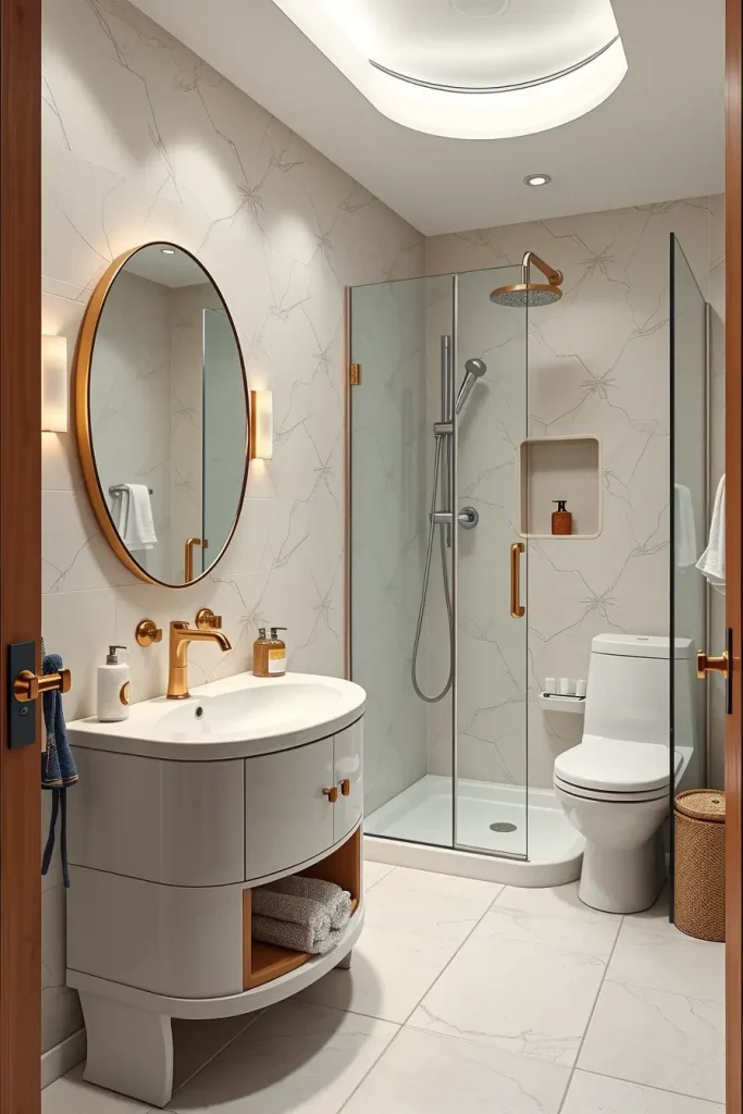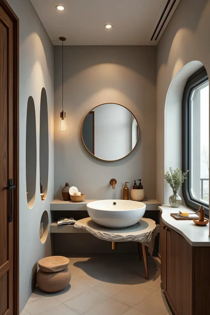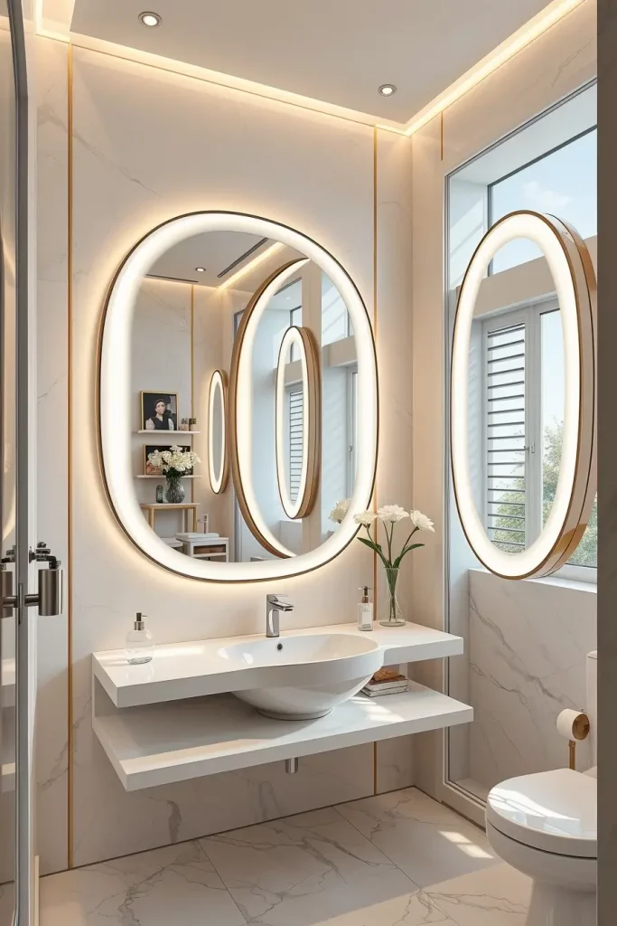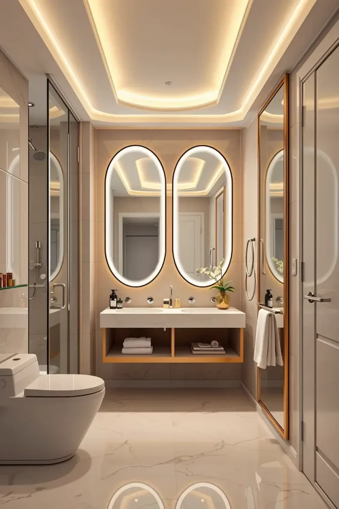 One of the most radical things that can be done in small bathrooms is lighting and oval-shaped fixtures bring an unexpectedly soft, classy air. In my recent work, I have applied oval sconces, curvy LEDs, and curvy long glowing items that create a smooth light covering on the walls. This style produces a relaxed and contemporary and aesthetically broadened space.