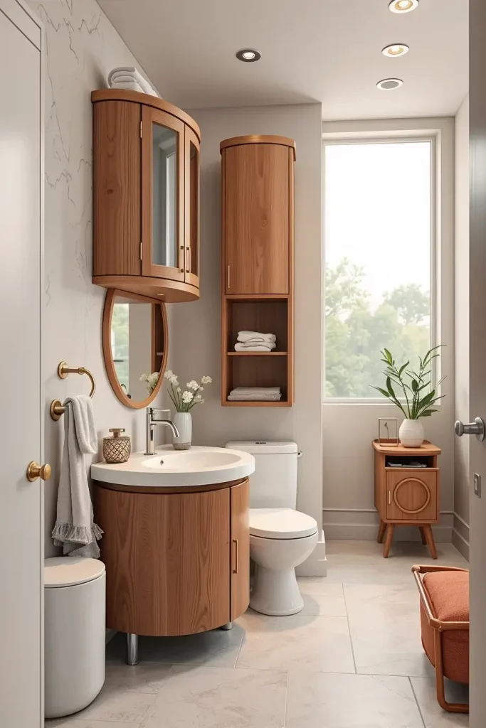 Soft-Edge Cabinetry For Chic Small Bathroom Storage