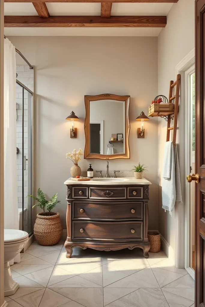 One of my favorite methods of making a sustainable bathroom with character is upcycling. Old dressers may be converted into special vanities and antique mirrors may be refurbished to create a one-of-a-kind focal point.