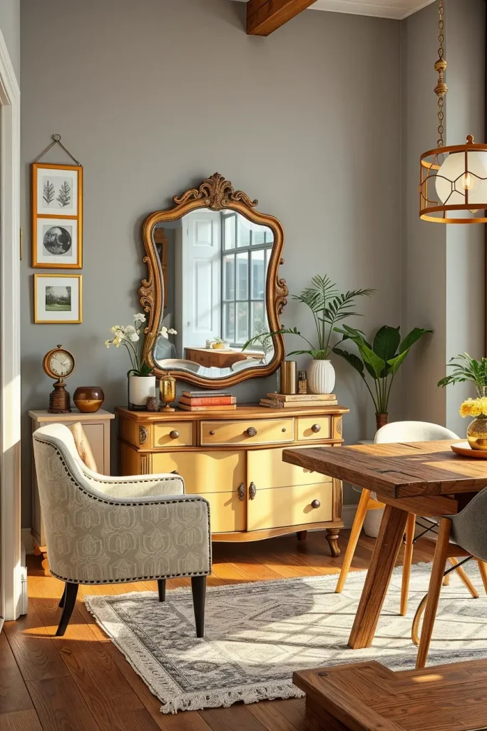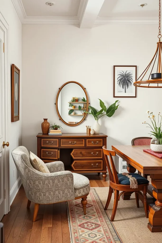 In my experience, most interior designers suggest that thrifted pieces should be combined with new sustainable furniture in order to achieve a balanced appearance. I have been inspired by Apartment Therapy, which suggests mixing the time periods to create a unified but eclectic design that is not accidental.