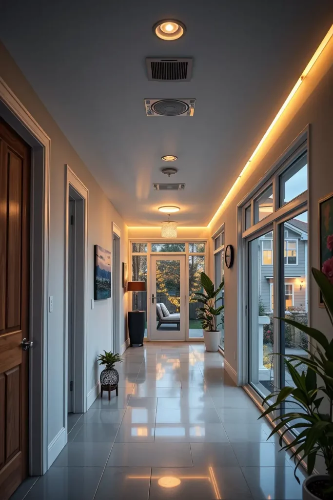 I usually install motion-sensing lighting and smart dimmers in halls and bathrooms in my designs. This will make sure that there is no unnecessary lighting. The programmable lighting system can be applied to the bedrooms to simulate sunrise to promote healthy sleeping habits.