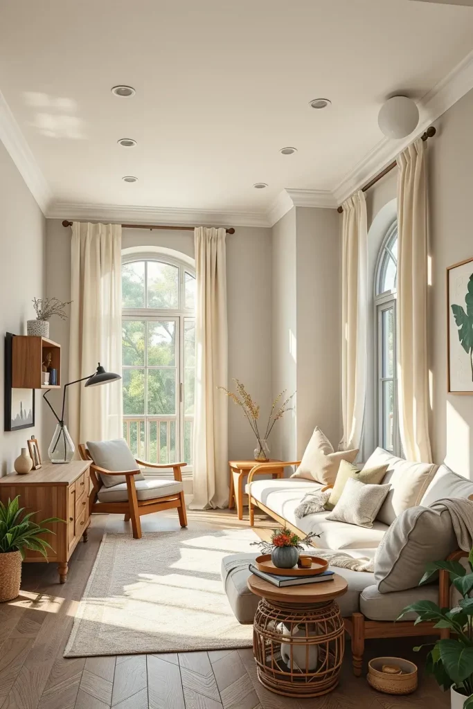 To complete this part, I would recommend the use of low-VOC upholstery. Most individuals do not remember that sofas, chairs and cushions emit toxic chemicals. Using eco-certified upholstery fabrics would mean the whole room design is in line with the principles of sustainability.