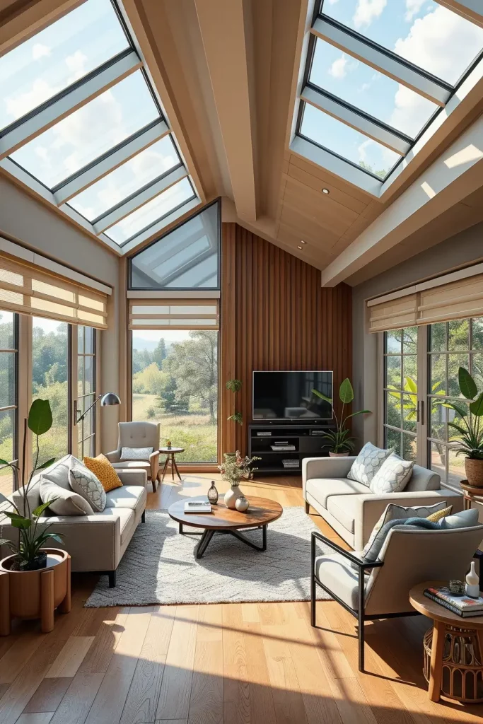 I would like to use solar-powered skylights, blinds, and charging stations in modern houses. Not only do they decrease reliance on grid electricity, but they also introduce something new and futuristic to the interior design.