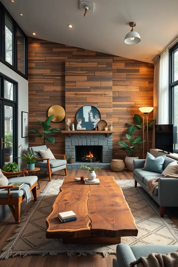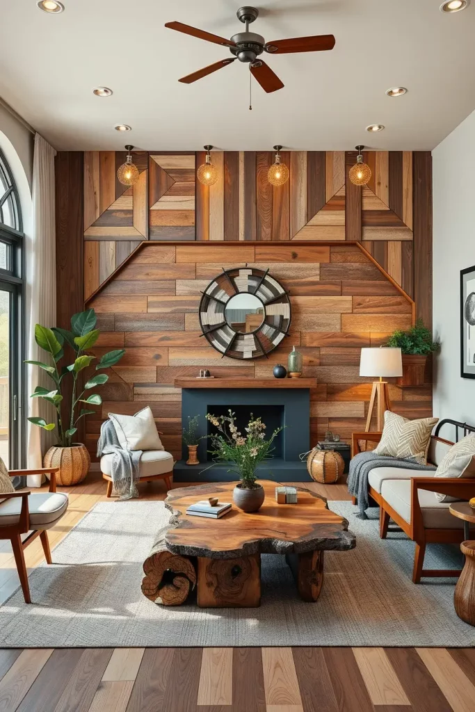 I prefer to use modern furniture when styling reclaimed wood to contrast with it. An example of a balance between rustic and modern would be a coffee table made of reclaimed wood with smooth and minimalist chairs. Not only is it visually attractive, but it also decreases the need of new timber that has just been harvested.