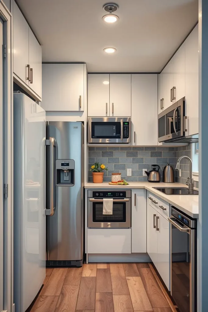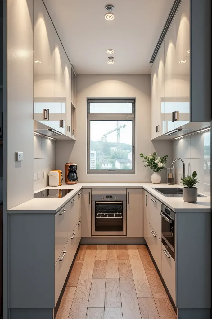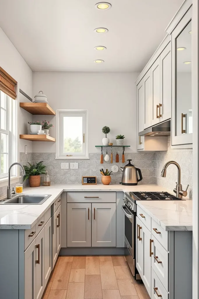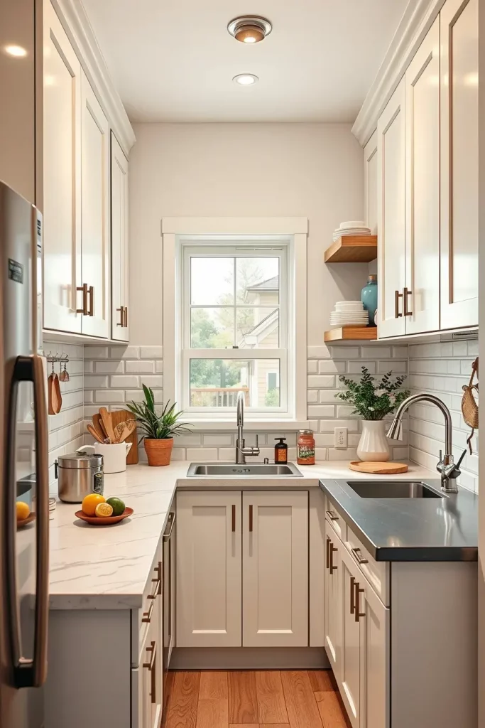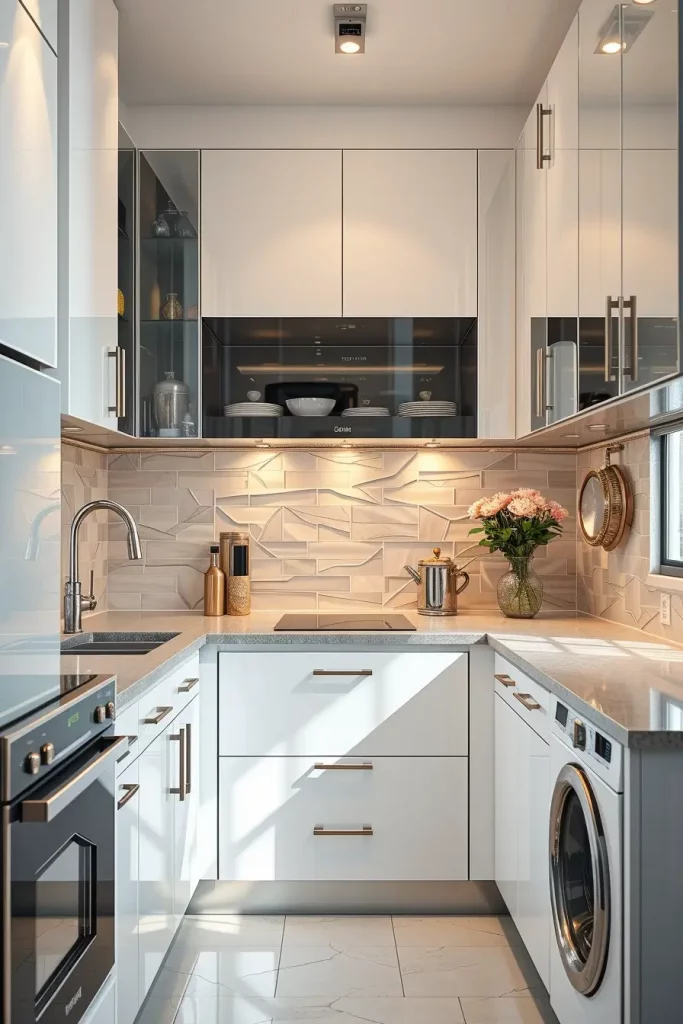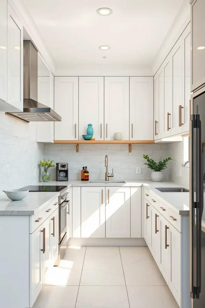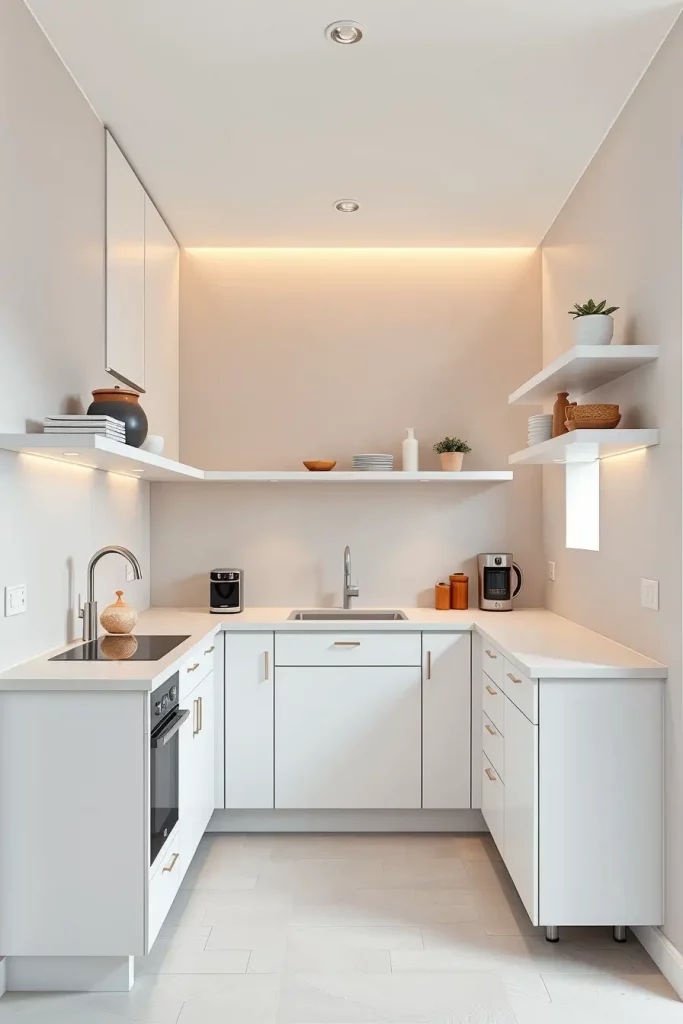 It is important to note that before finishing any small kitchen design, I always analyze whether I would need more warmth or contrast. A trace of natural wood even in a minor shelving feature can serve to make an otherwise smooth space gentle. An alternative is to add a low-sheen metallic trim around the edges of cabinets to add enough dimension. I would improve this part even more by adding a suggestion to incorporate the strategically placed micro-textured accent, small but meaningful details that would add to the overall final look.