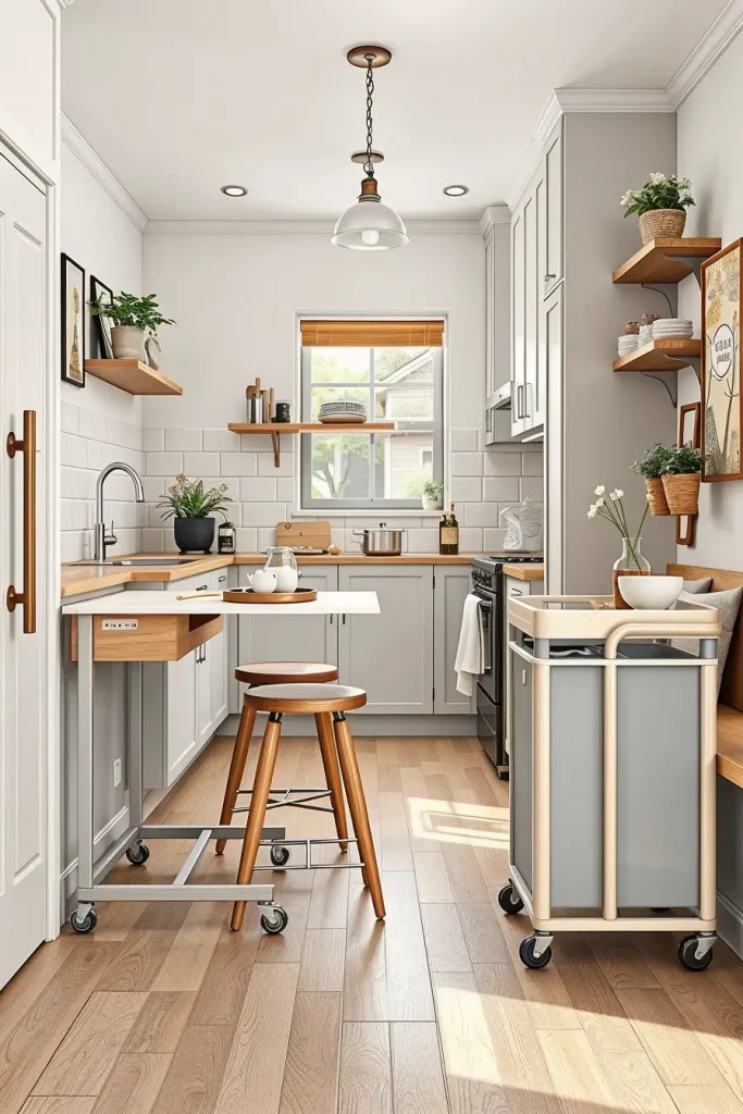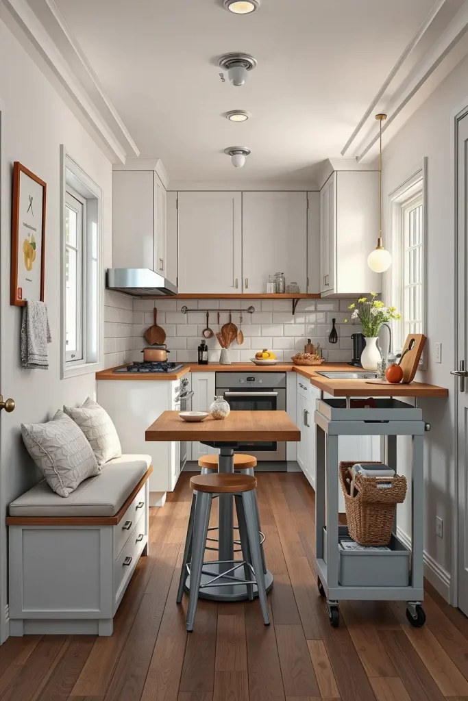On the items themselves, I select such items as pull out dining tables that can be folded into cabinets, stacking or nesting stools and rolling prep stations that can also be used as storage. These pieces of furniture make the kitchen practical without wasting the space. I ensure that I also use benches that have compartments to keep linens or small appliances. Every furniture selection facilitates productivity at the same time keeping a clean and modern design.