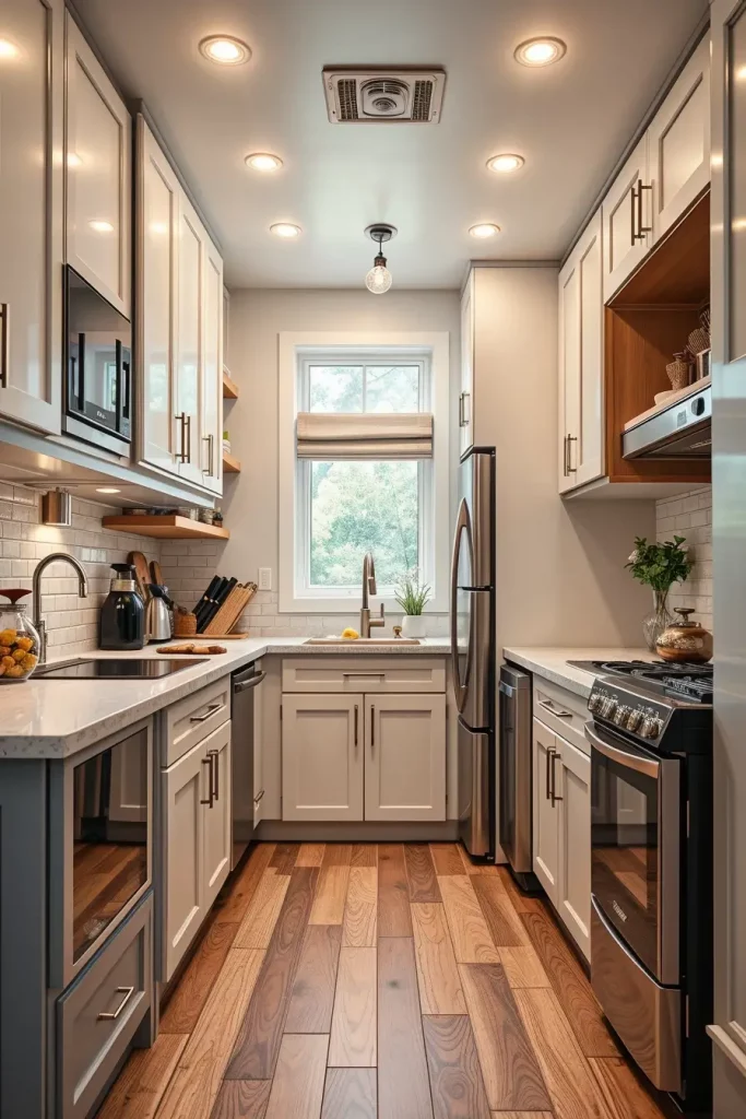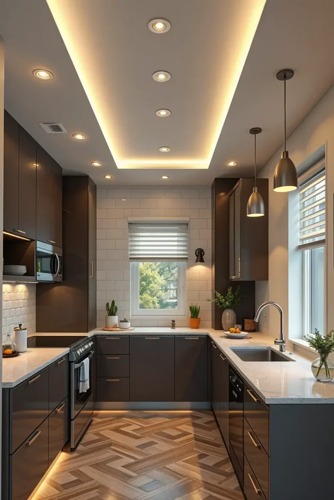 The floor is one of the strongest tools to enlarge the space visually when creating tiny kitchens. I apply special floor designs, materials, and colors to make small kitchens appear to be bigger, longer, or less enclosed in 2026. The use of light colors, diagonal grids, big tiles, etc. all contribute to an illusion of a more expansive footprint. I never leave out how the floor would react to the cabinetry and walls to have an uninterrupted and blending design.