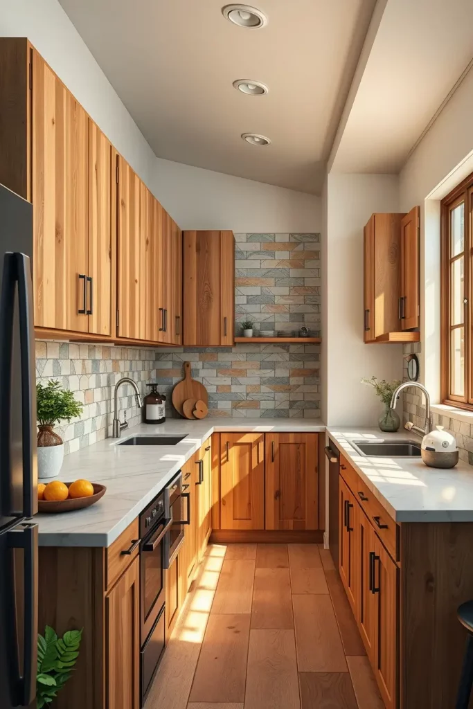 When choosing such a renovation, I would usually choose the FSC certified wood or recycled content in choosing the cabinetry as they have the stability required in a small kitchen. Also, I integrate recycled quartz or paper composite countertops, which is very efficient when one has a small area to cook. The inclusion of environmentally friendly tile i.e. recycled glass or ceramic adds a textured and light-reflective backdrop to the room that aids in opening up the room. Both options are eco-friendly and fulfill the great functionality needs of a small kitchen.