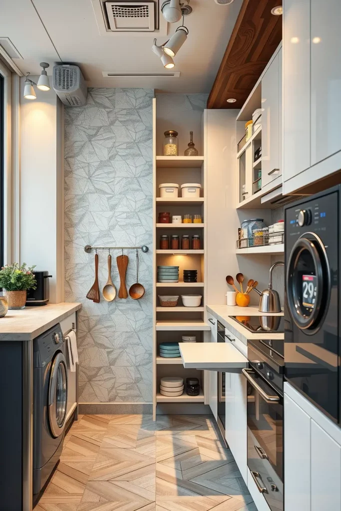 I also usually use narrow slide-out pantry towers in front of refrigerators or in between cabinets and they do not need additional floor space. The shelves are placed on the floors and attaching floating shelves at different levels allow placing jars, containers, and even baskets there to help maintain the visual order. Where I can, I include magnetic racks, stackable canisters and interior cabinet organizing so that all can be grouped and easily accessed. Such customized features bring a pantry experience that is full sized, even within the small space.