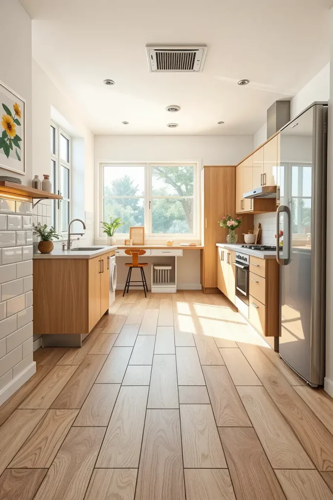 Small kitchen floors in my case work in situations where the design looks natural and unified. Famous design magazines tend to think over continuity–the flooring in the adjoining rooms is the same–to enlarge the visual perception. I have witnessed this trick succeed especially in the studio apartments where one type of flooring material is used to make the whole living room look like one.