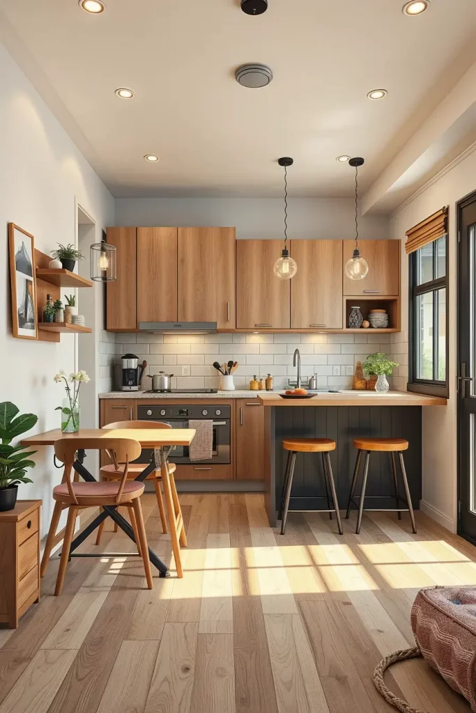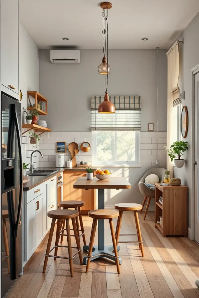 I also mount foldable tables on the wall that could be folded down when they are not in use thus creating more space to move around. Single residents or couples can utilize slim peninsula bars to have an effective meal place. I also adore the idea of incorporating lengthenable tabletops into the cabinet or islands where one can have the option of a dining table in all kinds of occasions. The space is flexible and simple to manage using lightweight and stackable chairs or stools.