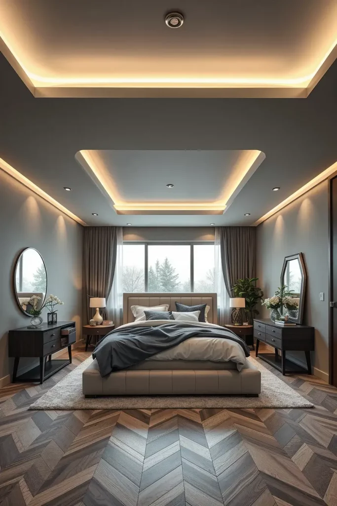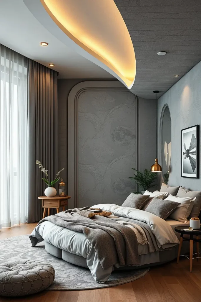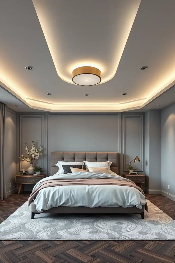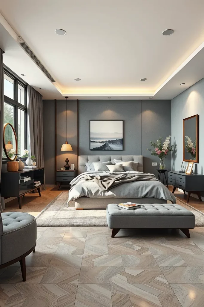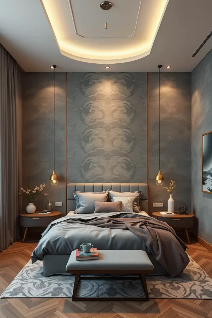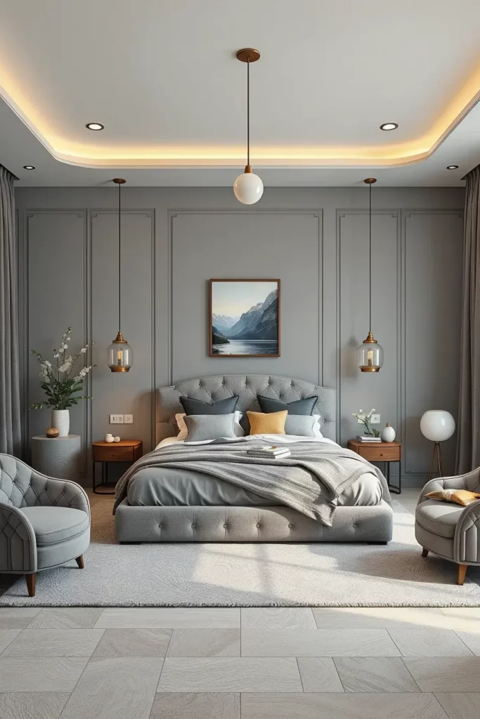 Accent ceilings are one of the most thrilling trends that will be introduced in the modern gray bedrooms in the year 2026. The perception of height and light can be changed by a well-designed ceiling and make the impression of luxury and depth.