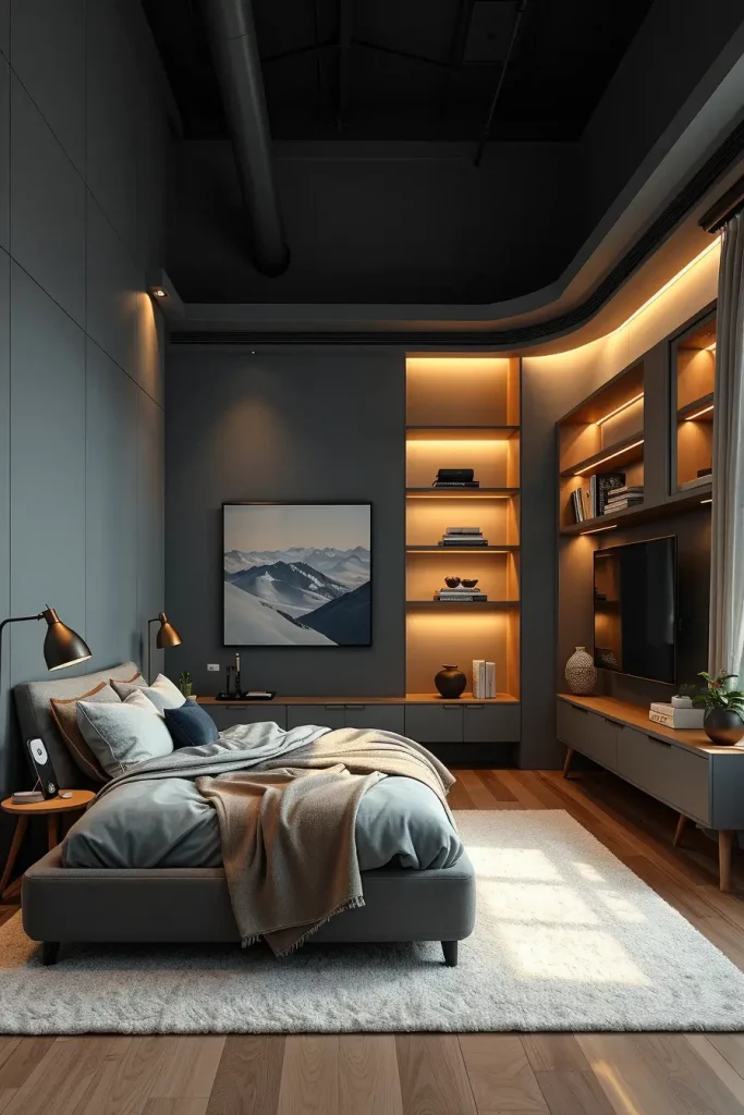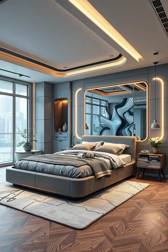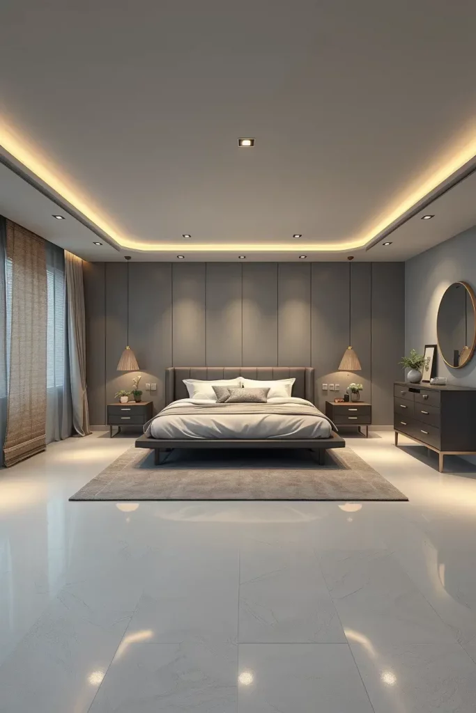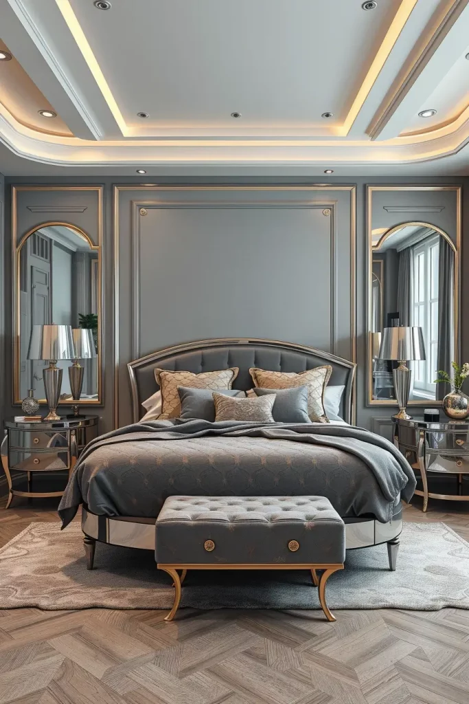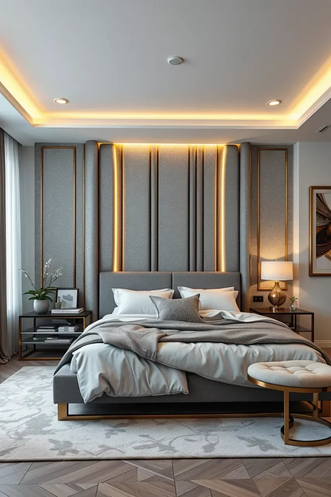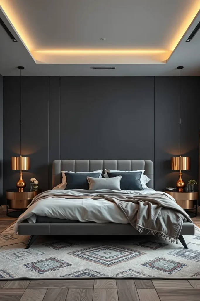 Accent ceilings are one of the most thrilling trends that will be introduced in the modern gray bedrooms in the year 2026. The perception of height and light can be changed by a well-designed ceiling and make the impression of luxury and depth.