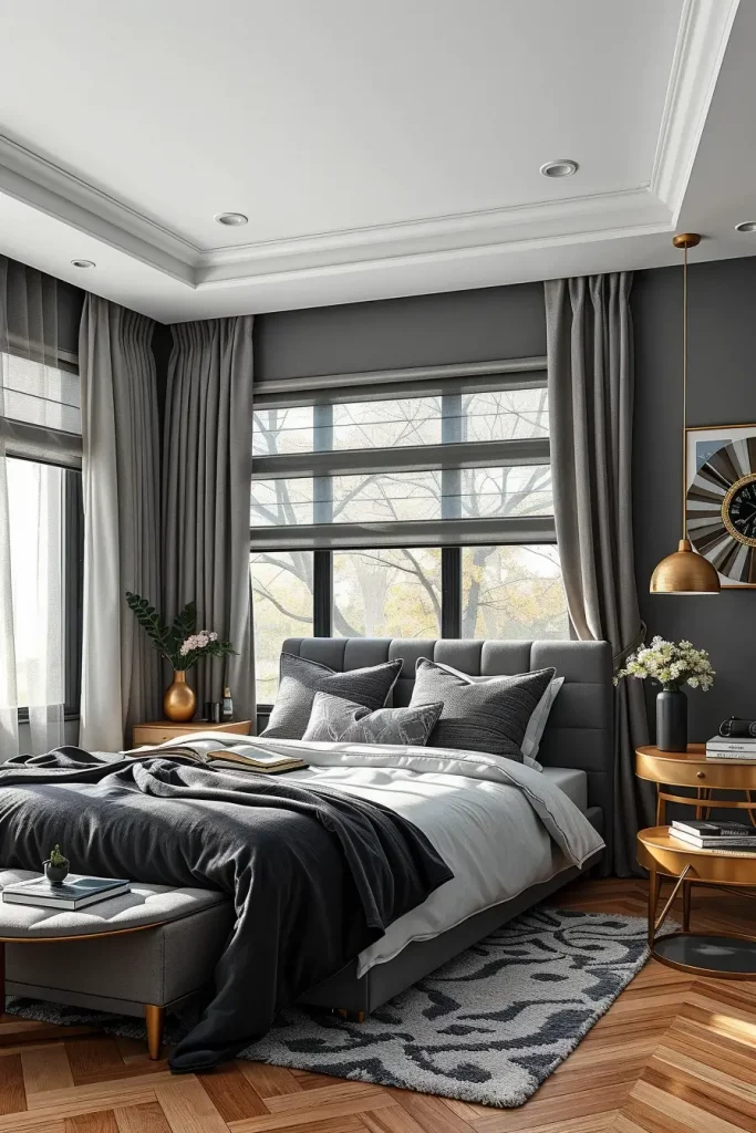 As a professional, I believe that soft floor-to-ceiling drapery immediately adds aesthetic value to a given space. Gray-on-gray window treatments do not need any explanation; it is classic and, at the same time, flexible, as it was reported in the 2025 trends issue in Veranda Magazine. To add to this section, I would add a piece of advice: opt to use blackout lining so that the quality of sleep would be preserved, and the gray undercasts would not fade under the sun.