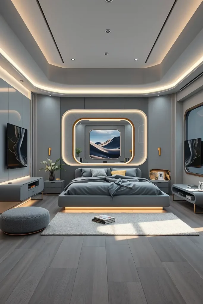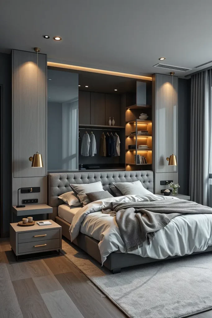 Futuristic Gray Bedrooms With Smart Furniture Integration
