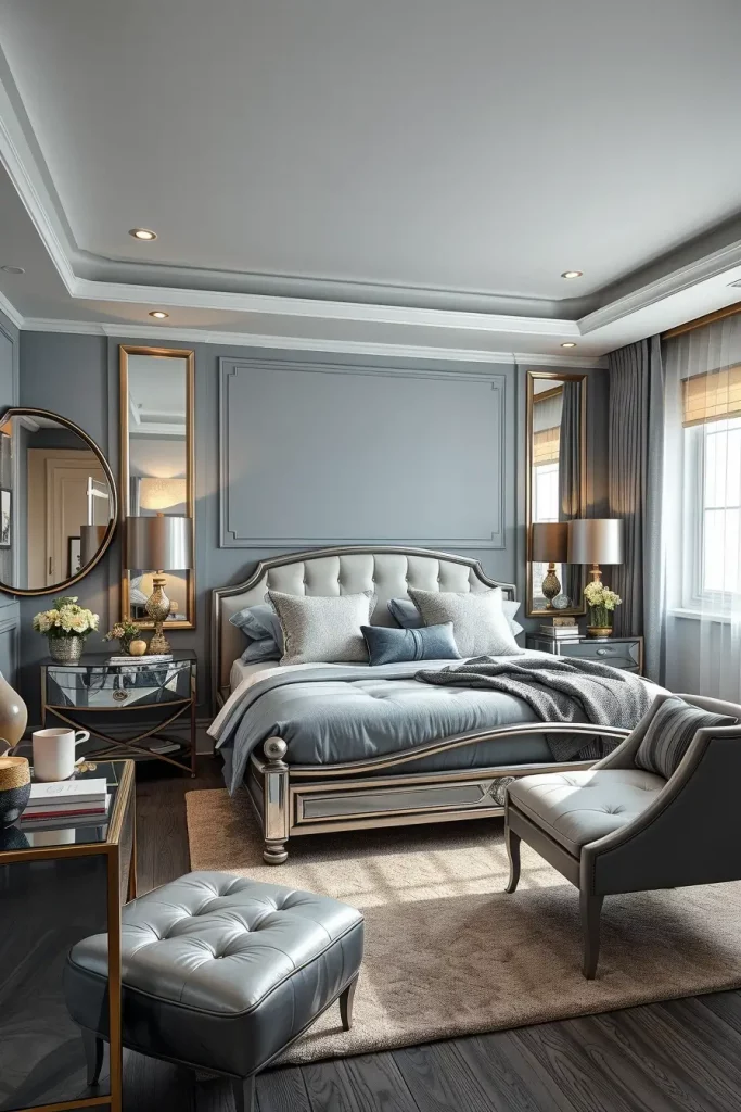 The glamorous comeback of chrome and metallic gray finish in bedroom design is coming in the year 2026. I consider these polished floors to be ideal in the addition of a designer element to the plain gray bedrooms. The light-metal play is not too sparkly, as it would have disturbed the serenity of the atmosphere.